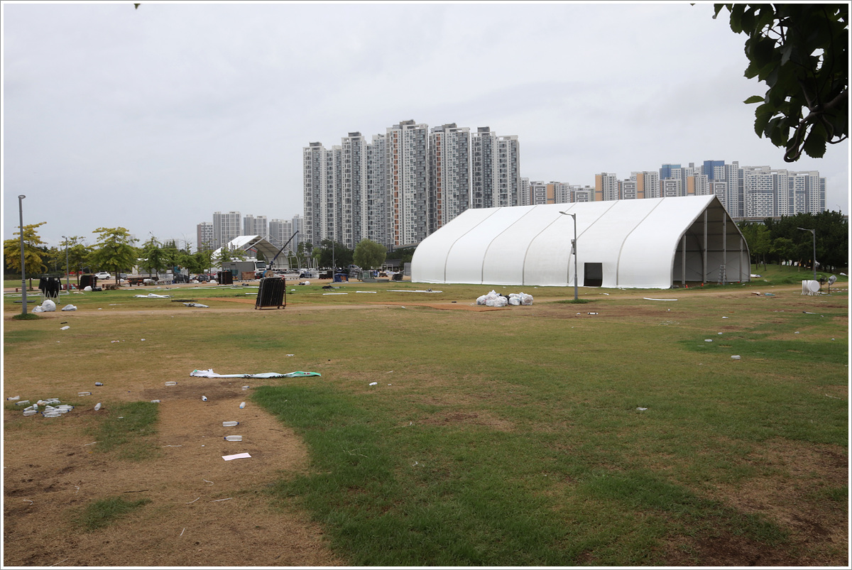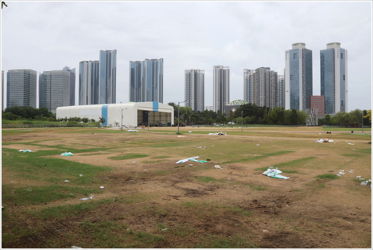 (우측 해안쪽은 향후 아파트가 들어설 부지로 계속 차단판넬이 따라 온다)