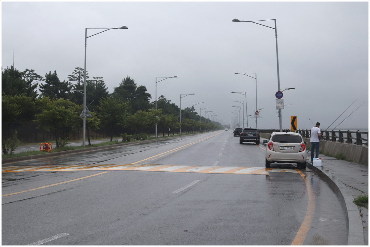 (잭니클라우스 골프클럽과 나란히 가는 도로... 비 내리는 와중에도 낚시꾼들이 낚시에 몰두하고 있다)