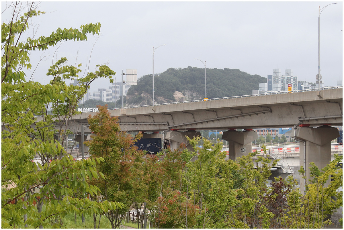 (아암1교 뒤로 송도석산이 살짝 보이면서 우측 청량산)
