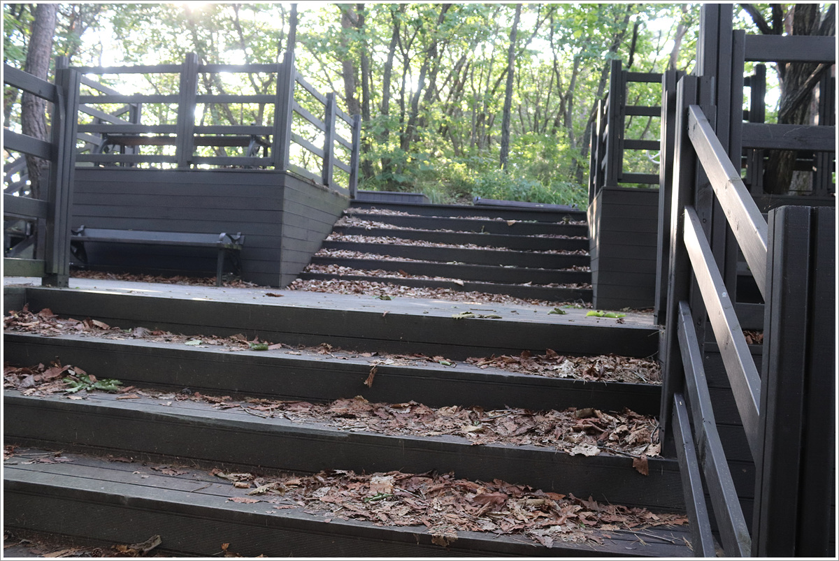 (능선길과 만나는 고갯마루 데크에서 잠깐 휴식)