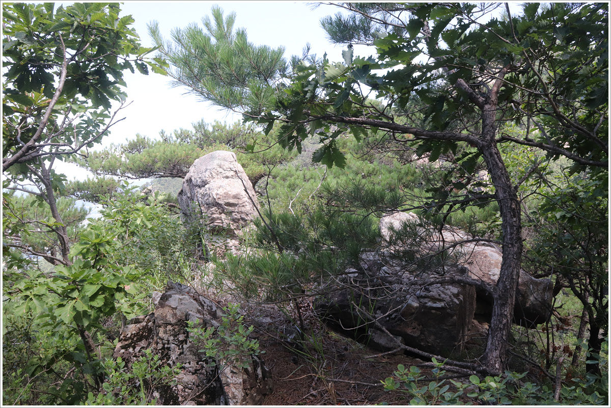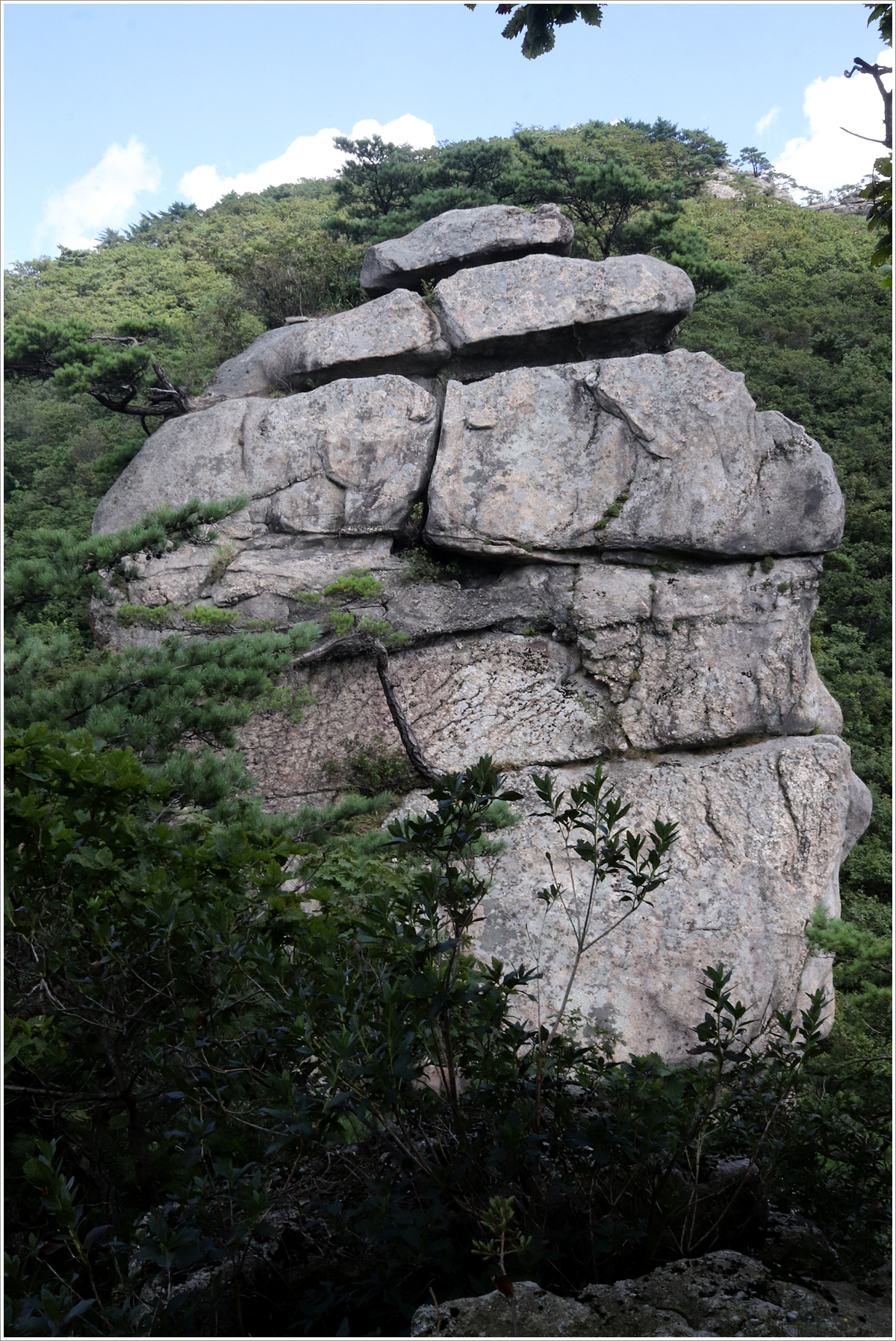 (돌탑이 있는 궁예침전바위 뒷쪽 안부... 이쪽에서는 다소 까칠하긴 해도 궁예처럼 꼭데기에 오를 수 있다고 하는데 그럴 마음은 전혀 없다)