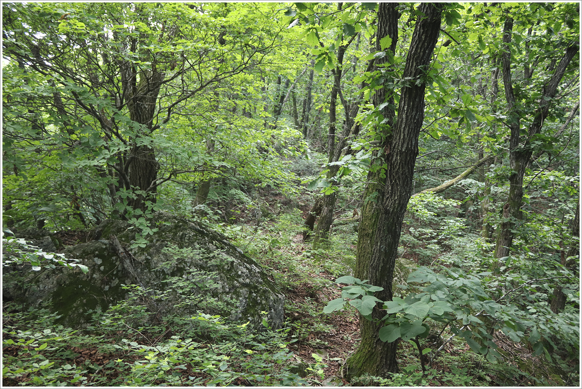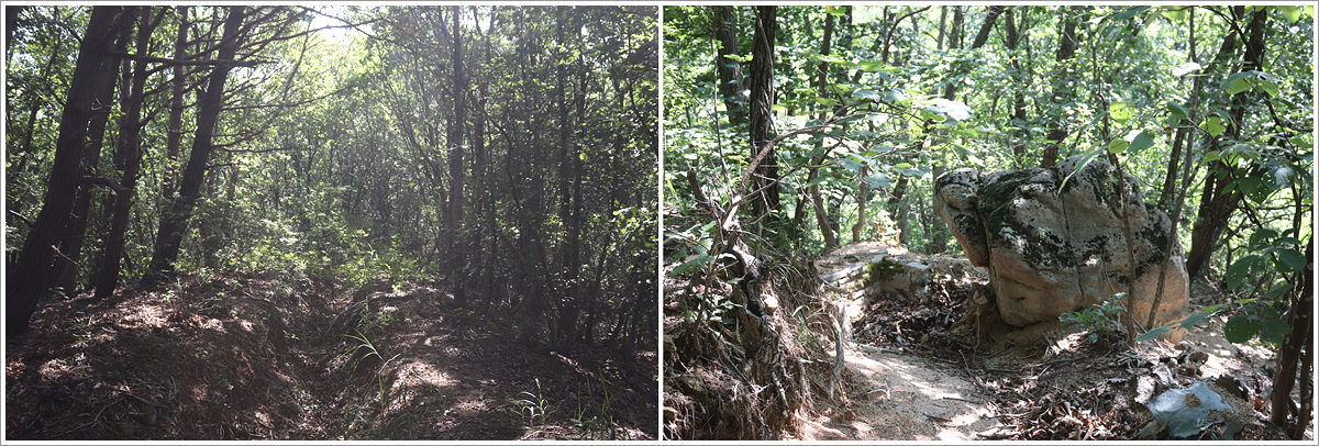 (이어 산길은 우측 사면으로 한 굽이 이어진 뒤)