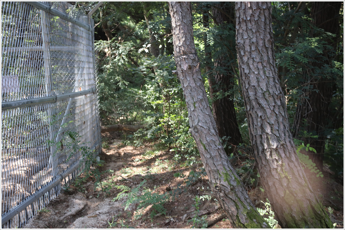 (궁예봉의 들머리인 강포3교로 내려서기 위해서는 좁은 길로 바뀐 펜스 옆길을 계속 따라야 한다)