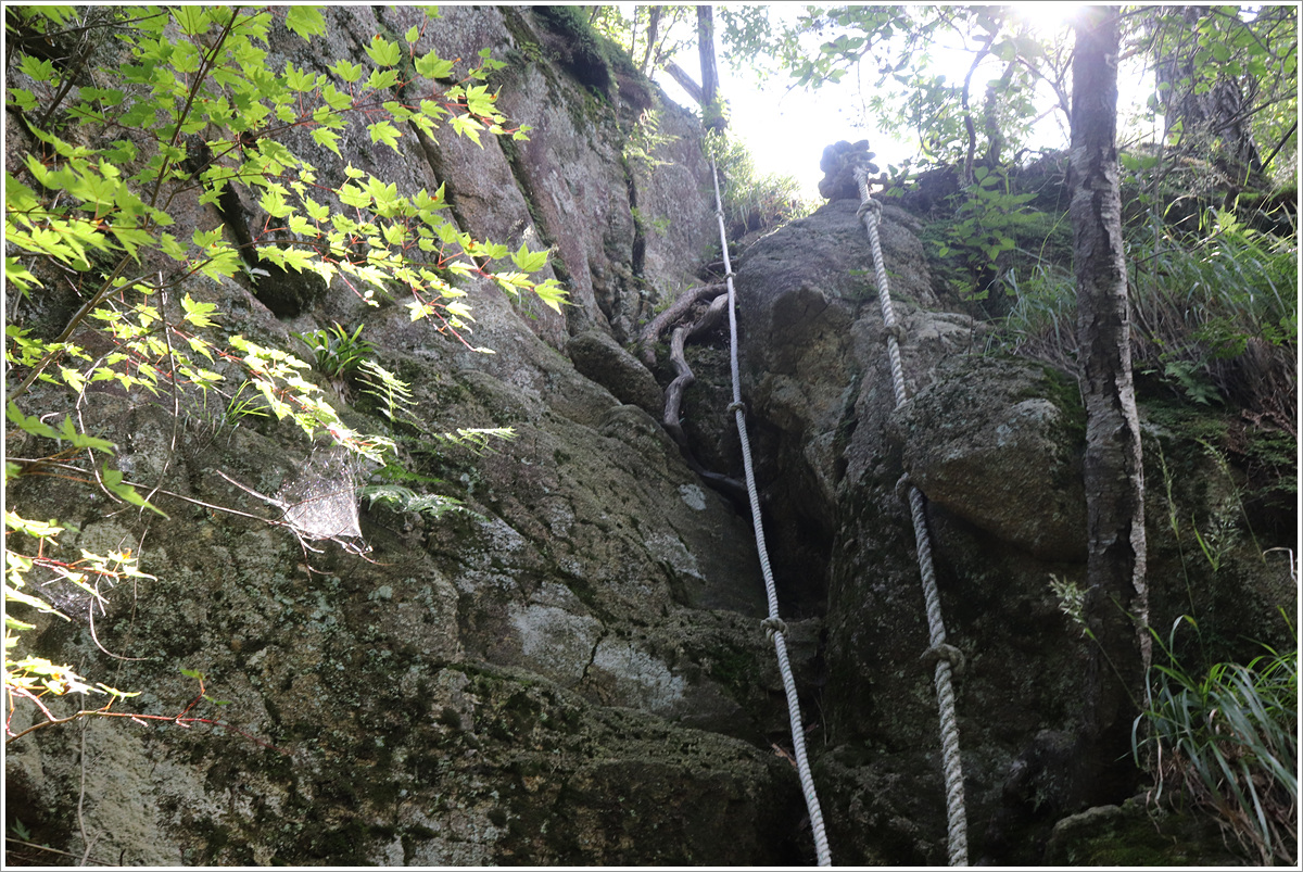 (궁예봉 뒤로 하자마자 바로 직벽 내림으로 이어지는데 역시 낡은 밧줄이라 조심조심)