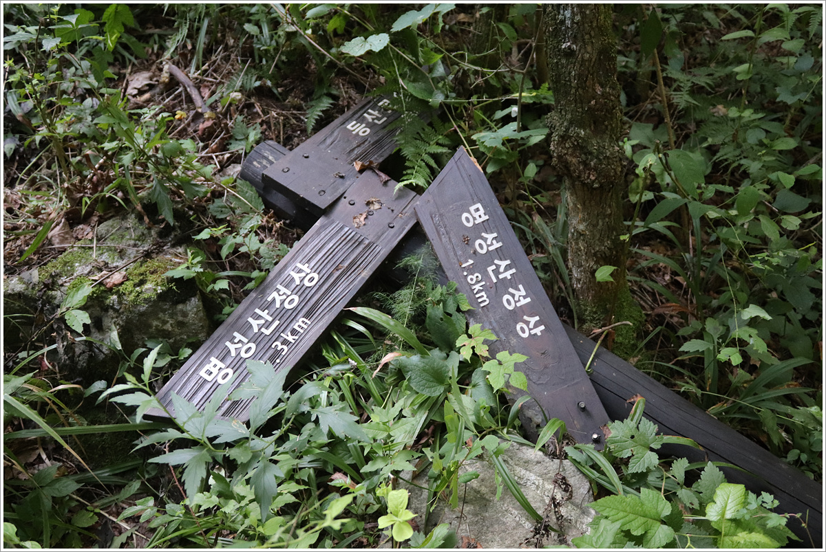 (쓰러진 이정표가 나오면서 명성산에서 바로 내려선 등로를 만나는 지점이다)
