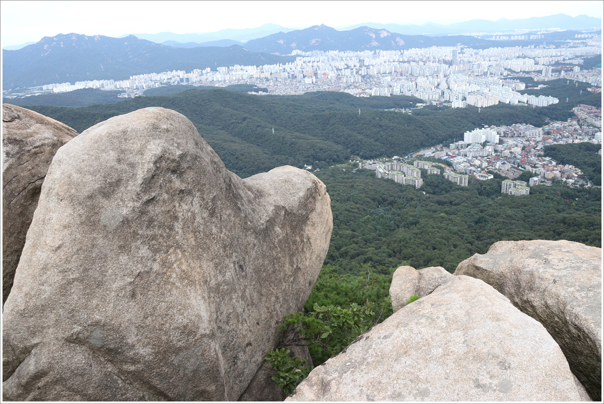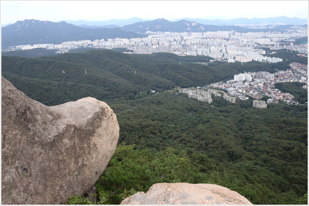 (불암산-용마산 방향 아래에는 합궁바위와 염소바위가 선명하게 보인다)