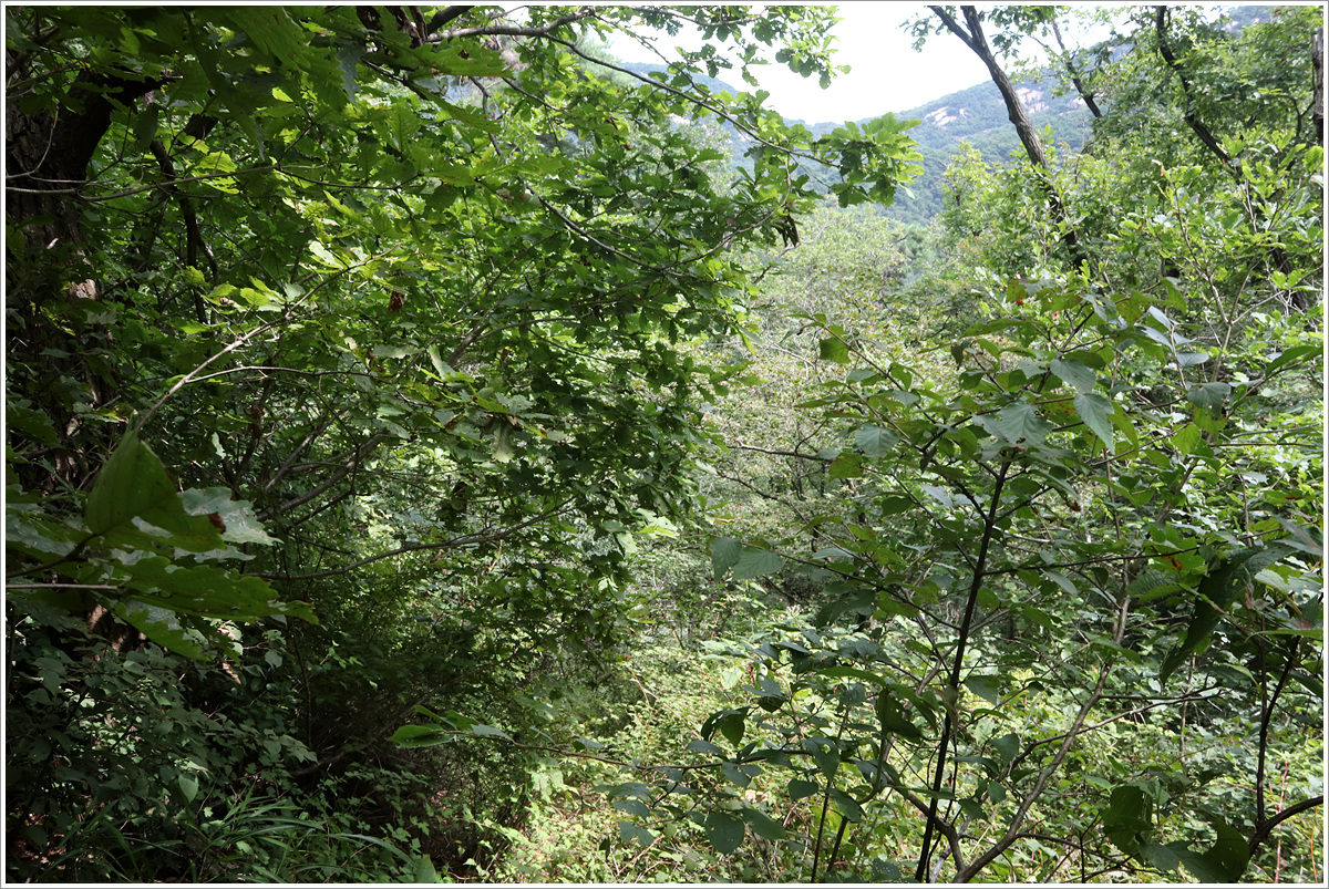 (이번에는 숨은계곡과 인수계곡 사이 인수능선을 넘어야 하는데 초입 산길이 사면으로 이어지다가 끊어져 조금 헤맴... 빽을 한 후 지능선 방향으로 바로 올라야 제대로 된 산길이 나온다)