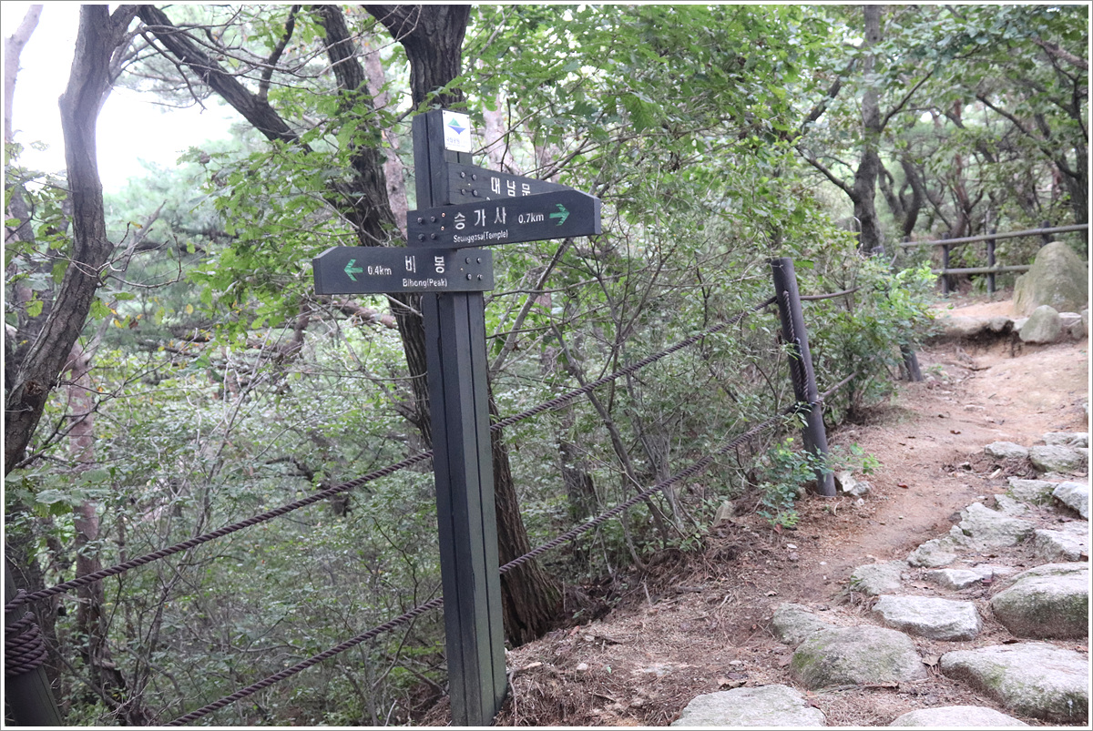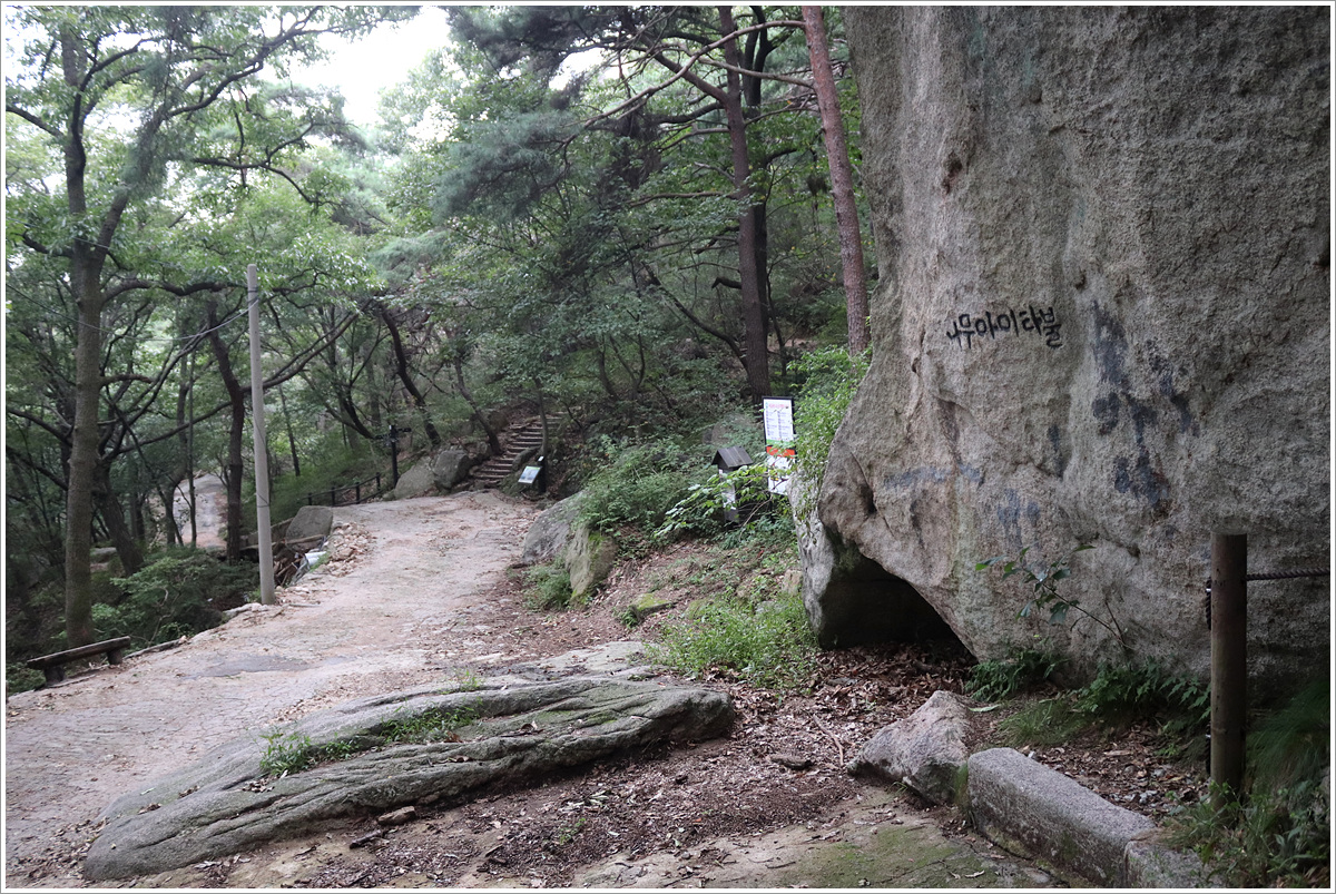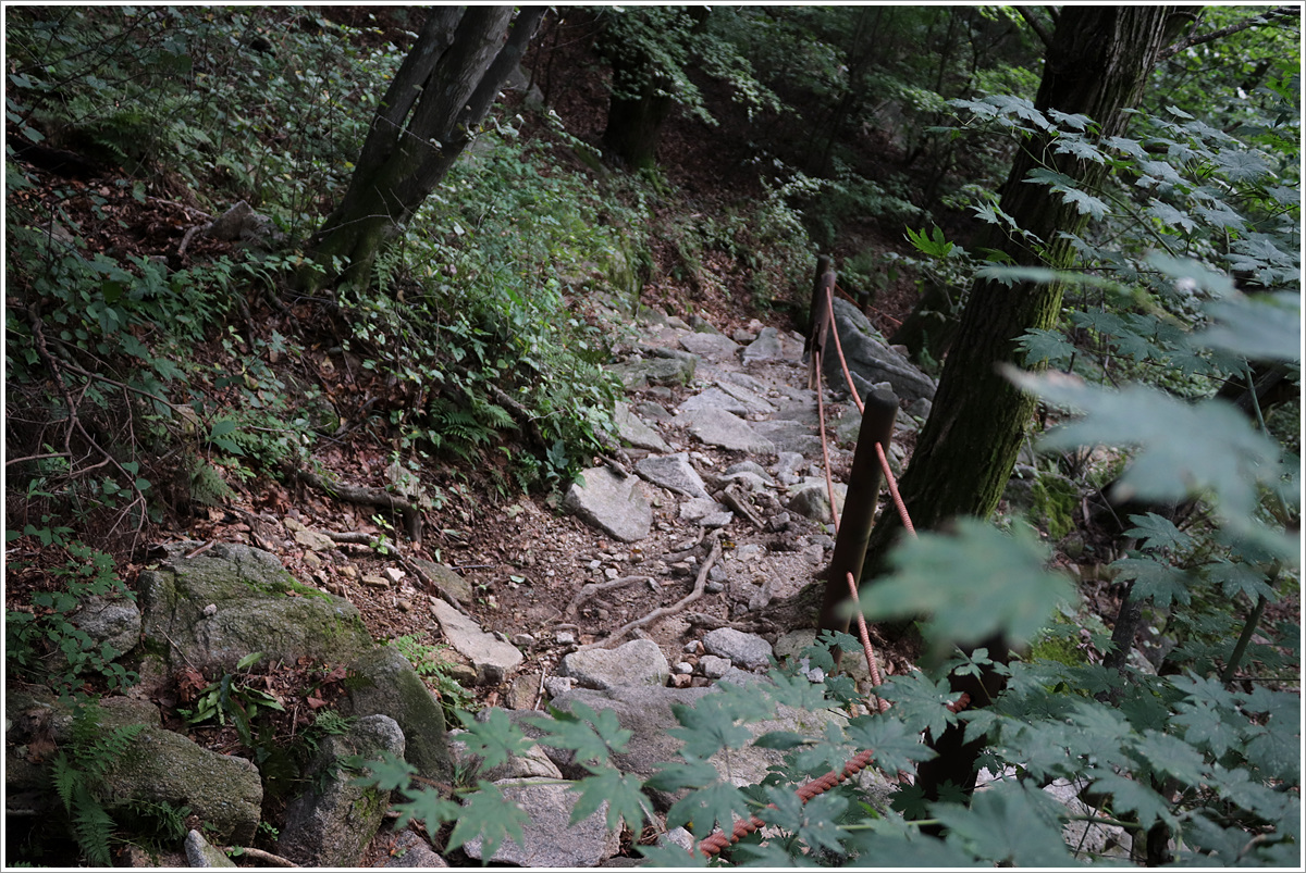 (초반은 산길이 편안헀지만 계곡이 시작된 이후부터는 시종 계단으로 이어져 다소 지루한 산길)