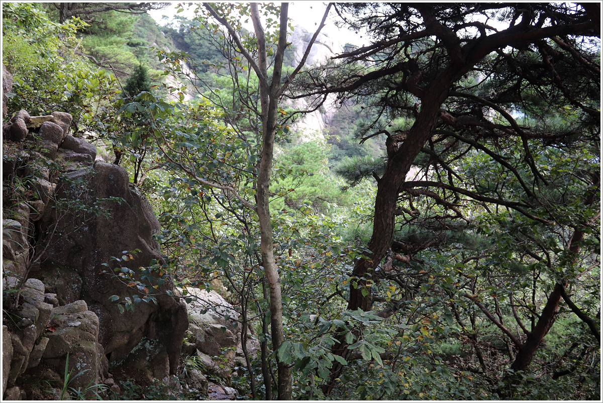 (홈통바위를 내려서면 흐릿한 족적 따라 나월봉 오름으로... 직전에서 이쪽 우측은 살짝 까다롭고)
