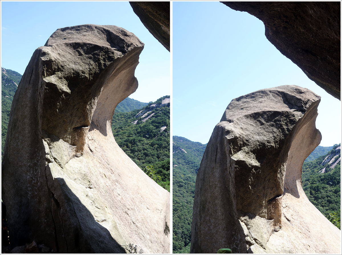(우측으로 계곡을 건너 가파른 산길을 한동안 올라선 뒤 만나는 이 바위가 블랙팬서)