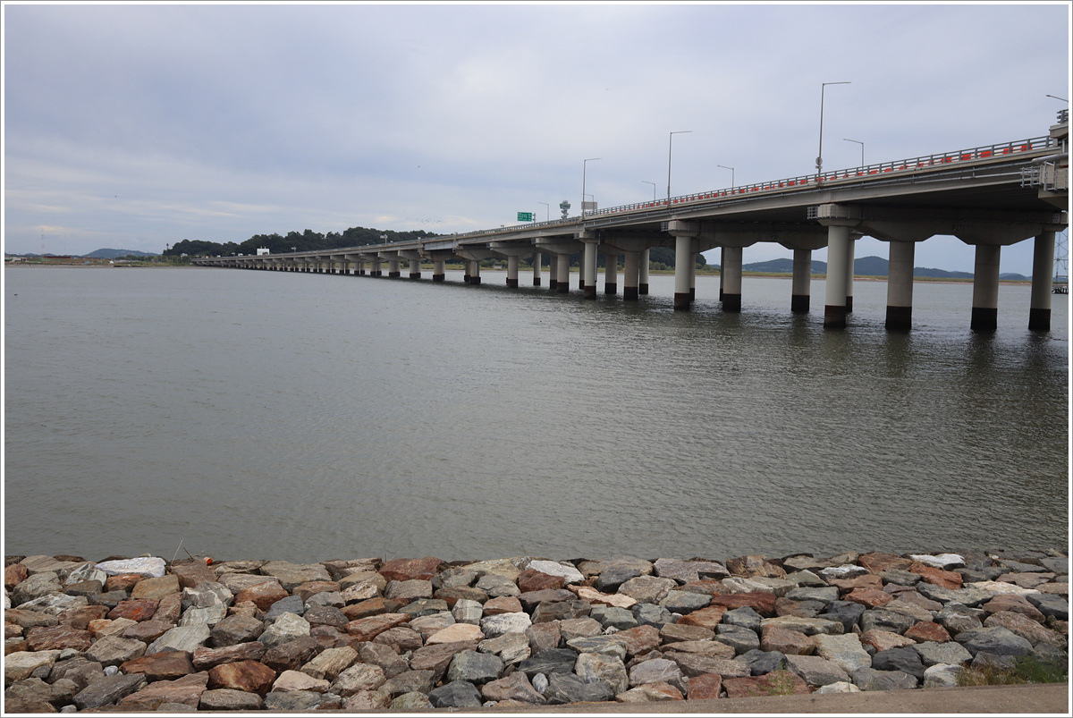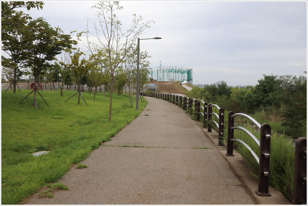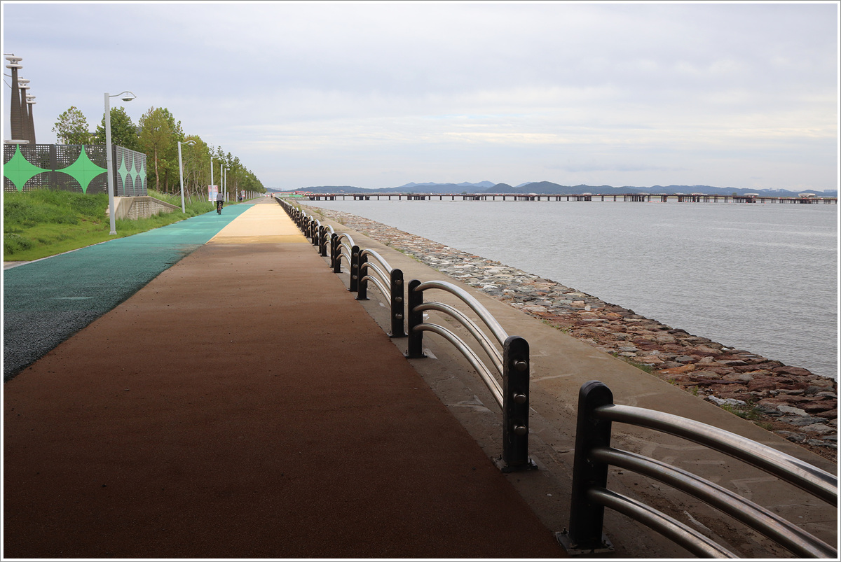 (경관브릿지를 나와 이어지는 제방을 따른다)