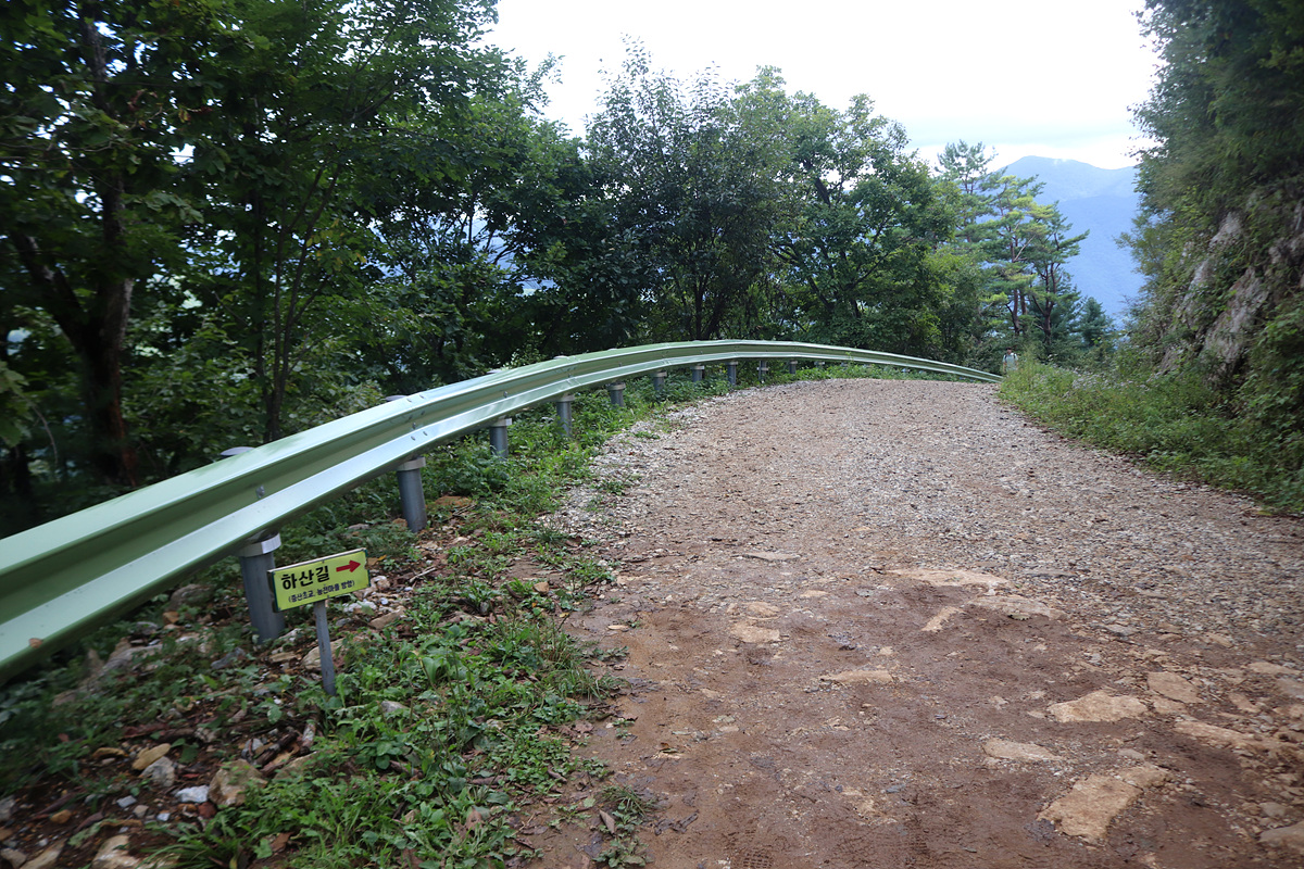 (하산길이 표기된 임도로 하산한다)