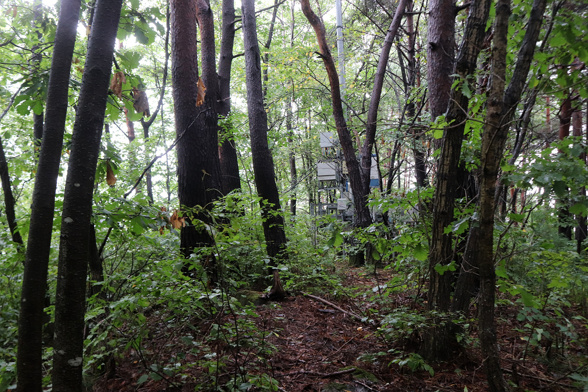 (이동통신 시설이 자리한 가운데 선답자 표지기 표지기 몇 장 보일 뿐 특징이 없다)