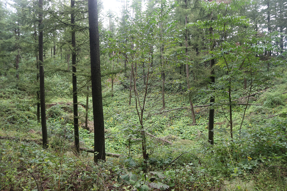 (아까 임도에서 능전계곡 방향을 택했으면 이리로 내려왔을 듯... 길도 질퍽한 것 같고 덕분에 민둥산 정상과 돌리네 연못 분위기를 제대로 음미했으니 안 내려오길 잘 한 것 같다)