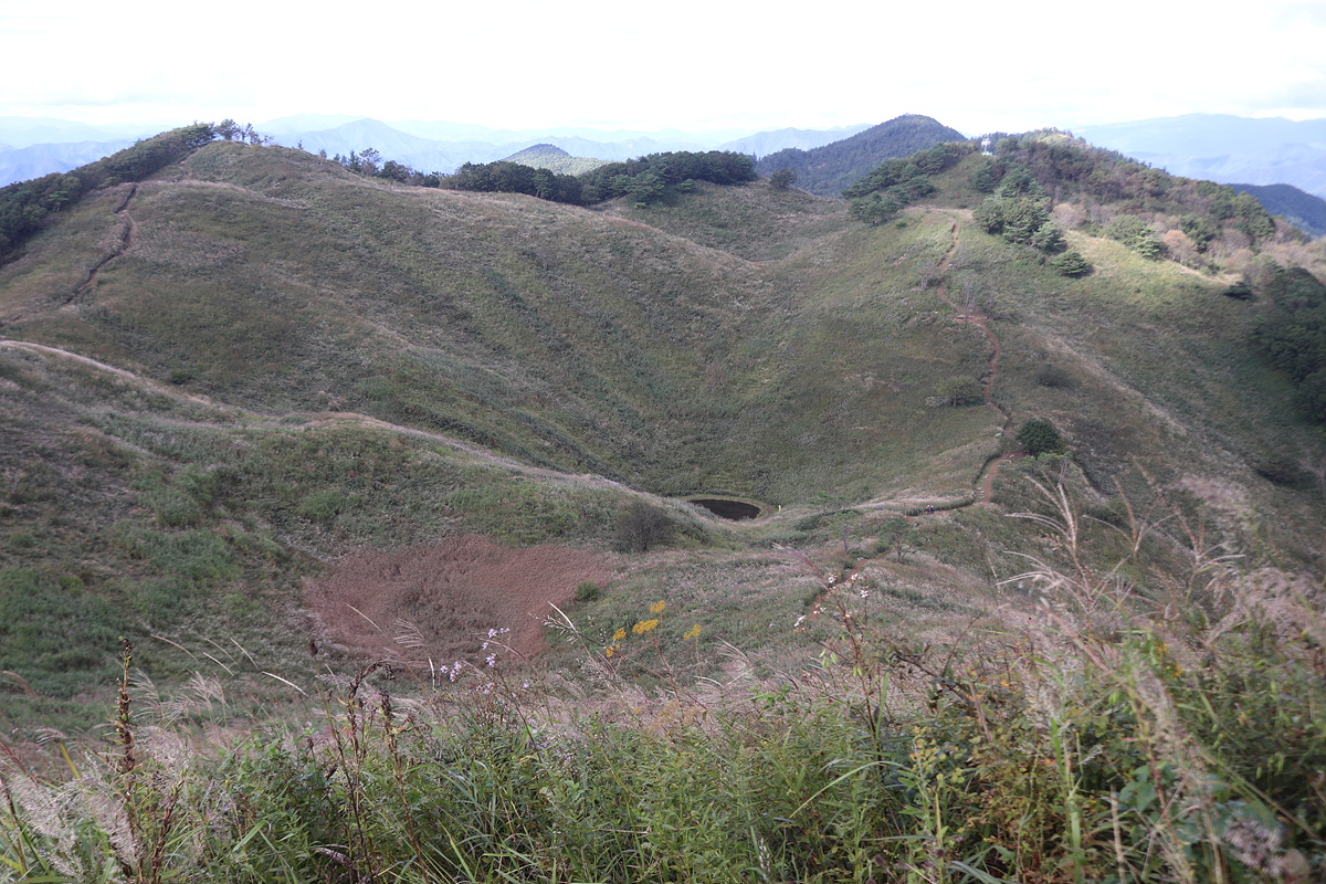 (양쪽이 다 능선으로 이루어진 가운데 한 바퀴 빙 돌게끔 산책로가 조성되어 있고 돌리네 연못도 내려갈 수 있다)