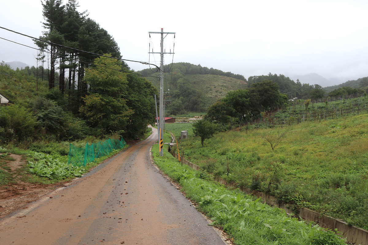 (차들이 밭을 오가는 때문인지 도로가 상당히 질퍽거린다)