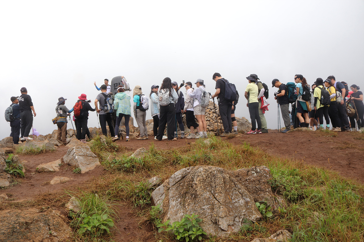 (정상석을 인증하려고 기다리는 사람들이다)