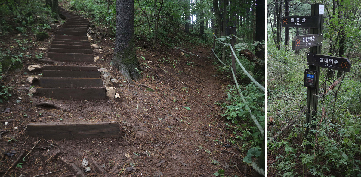 (순환임도로 내려선 뒤 좌측 화암약수 방향으로 간다)