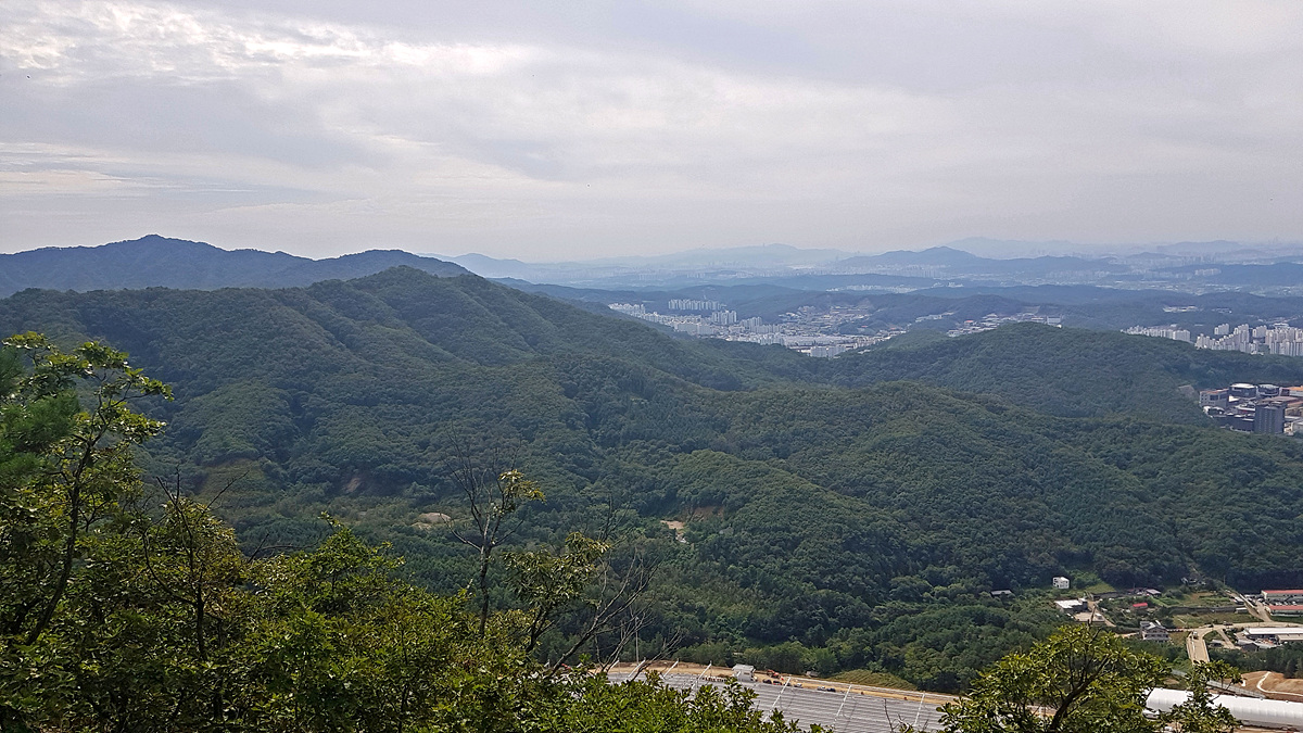 (나무 사이 금곡리 일대 차량기지 공사장이 내려 보이고)