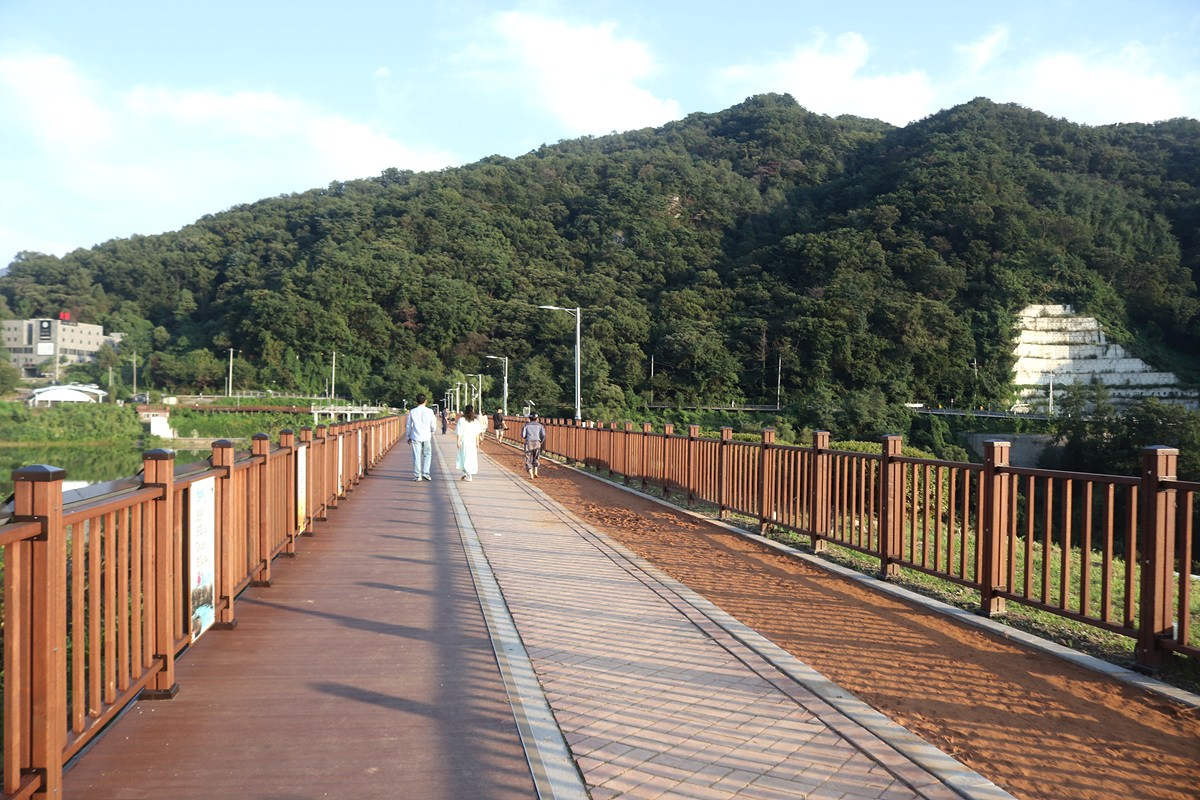 (제방이 끝나기 직전 수문 옆으로 조성된 데크계단길 따라 주차장으로)