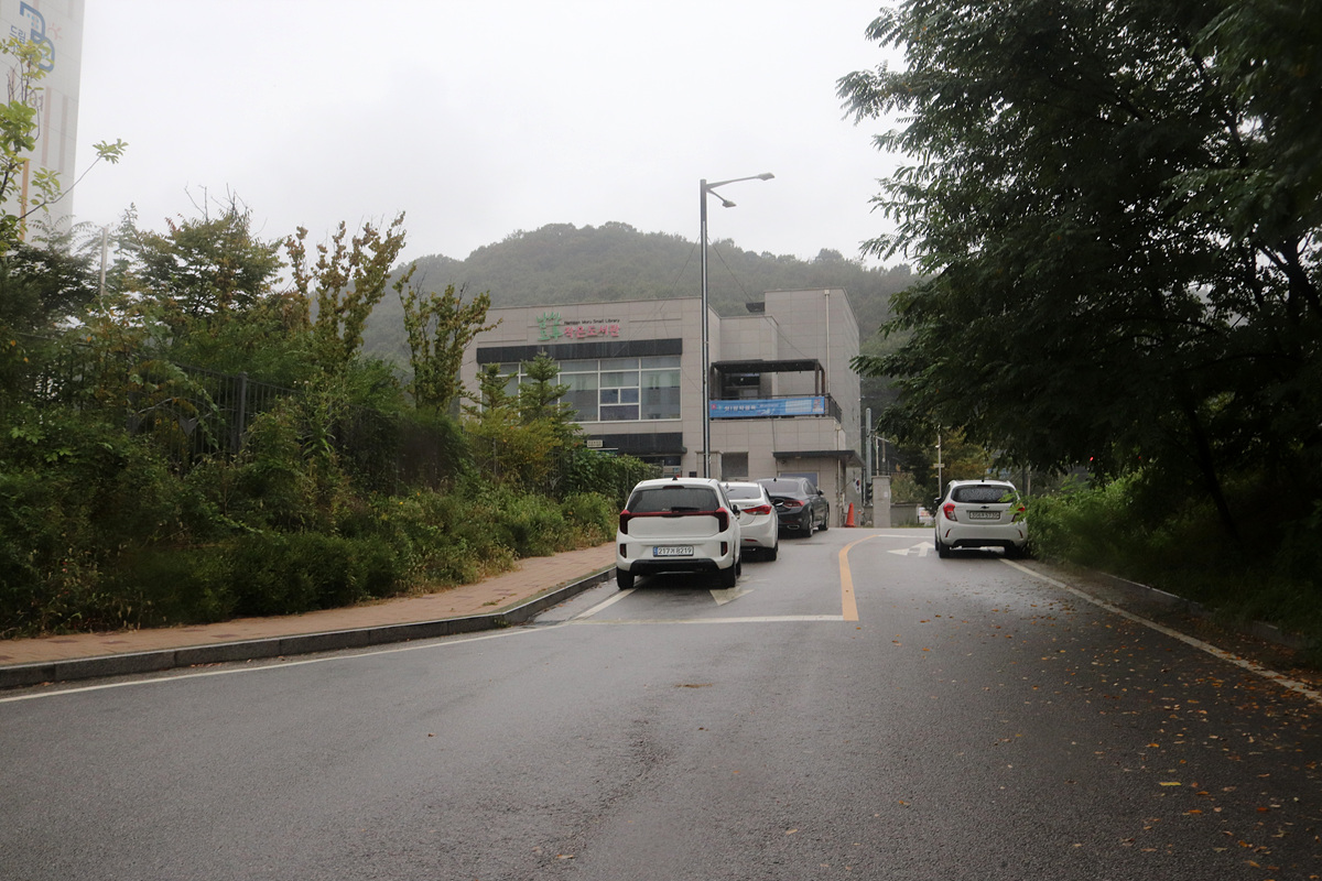 (아파트 정문 옆에 위치한 남산모루 작은도서관)