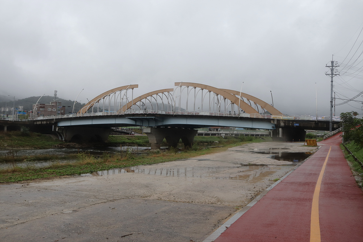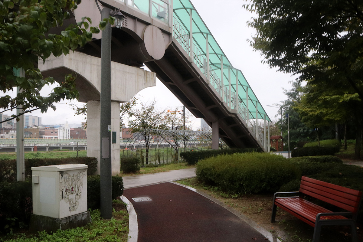 (신천 가로지르는 보도교 만나고)