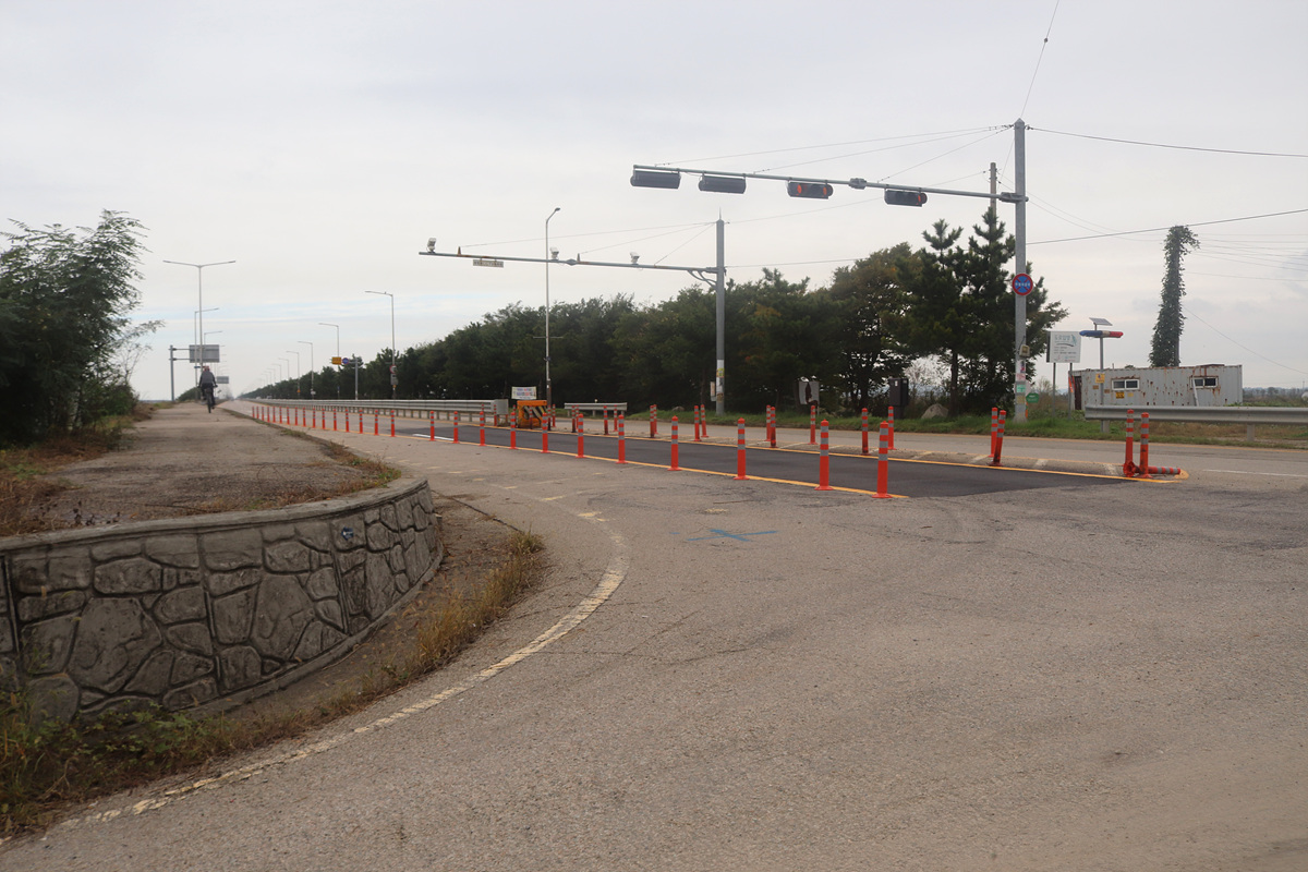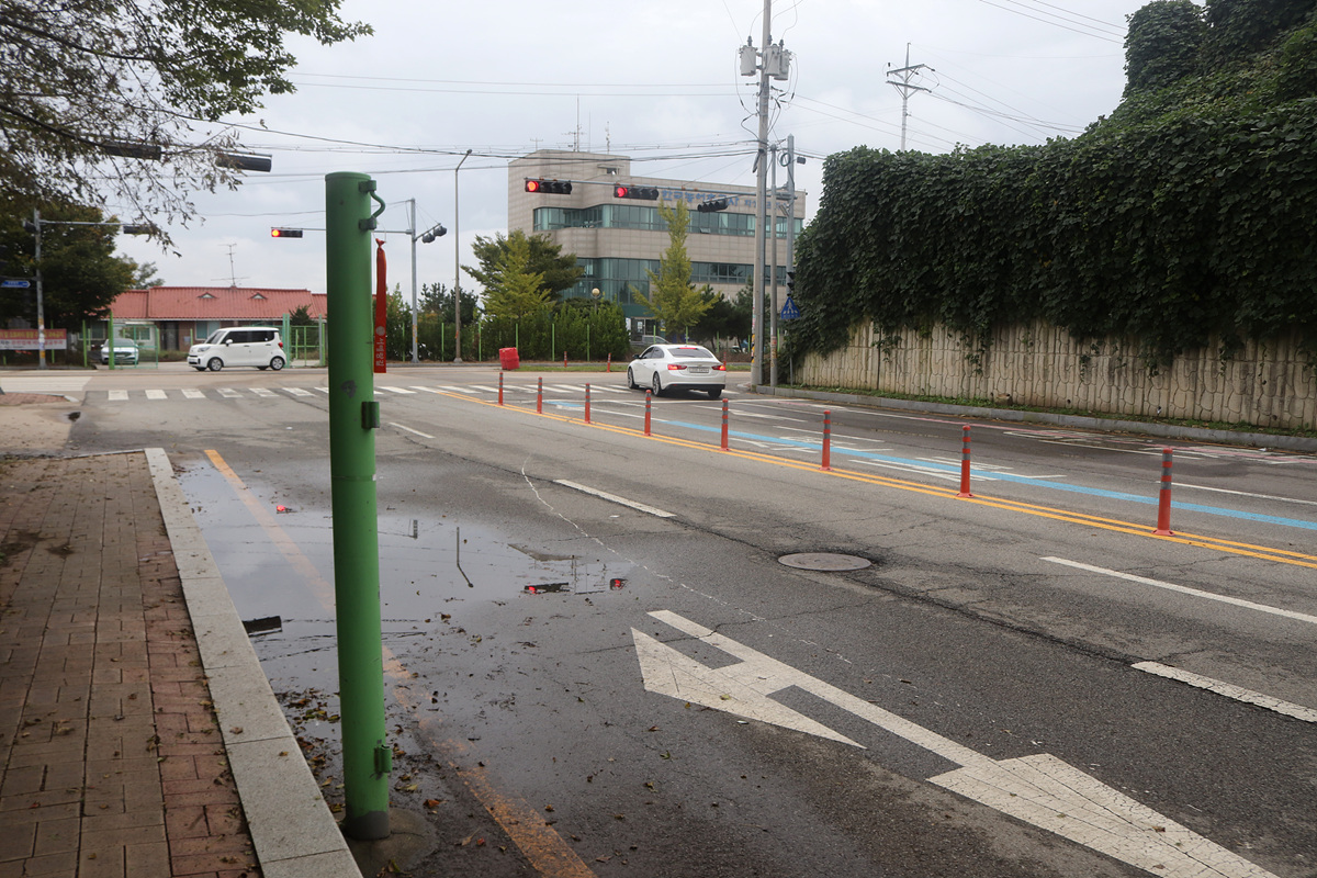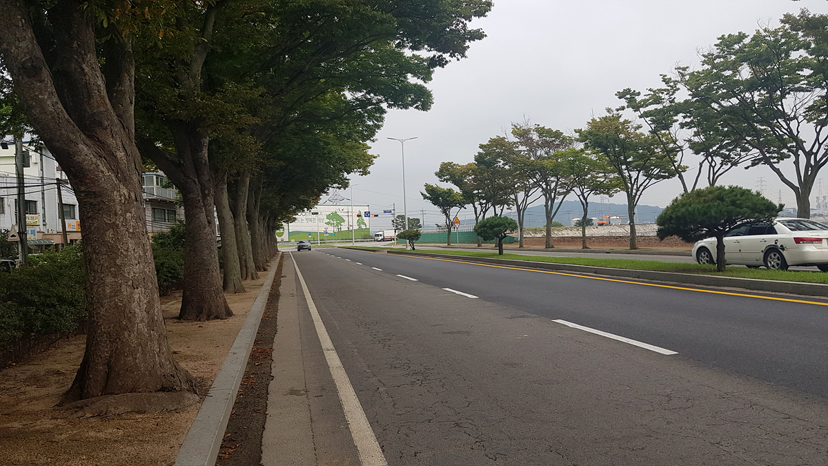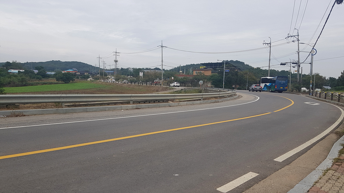 (여기부터는 인도가 없는 2차선 도로라 차량 통행이 많을 경우 다소 신경이 쓰이겠지만 일요일 늦은 시간이라 그런지 통행이 거의 없어 여유있게 진행한다)