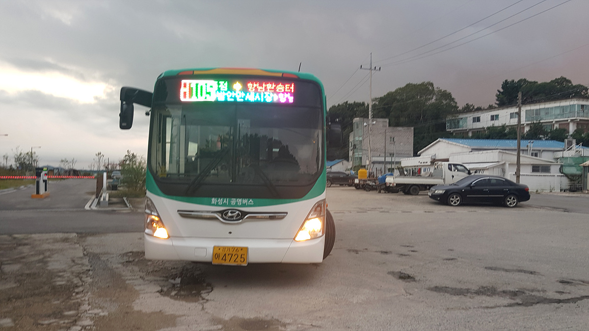 고온리종점(18:00)-(H105번버스)-화산삼거리(18:13-28)-(기아자동차로+포승향남로)-조암IC-(시흥평택+영동)-일신동(19:13)