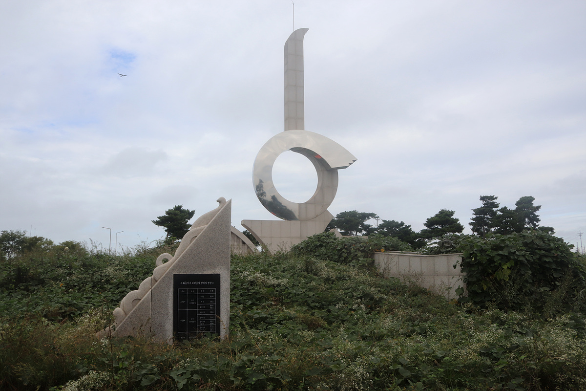 (화성방조제 준공기념탑이라고 하는데 관리가 안 되어 잡풀에 묻혀 있다)