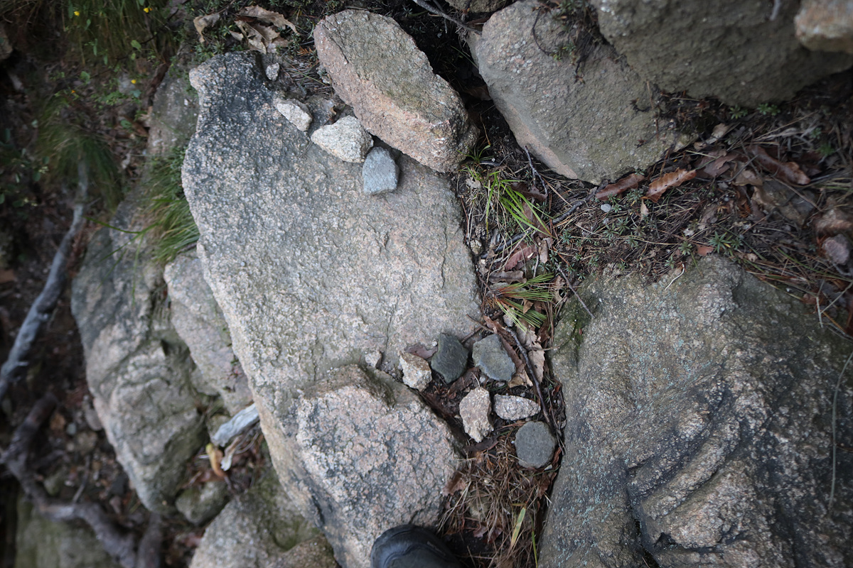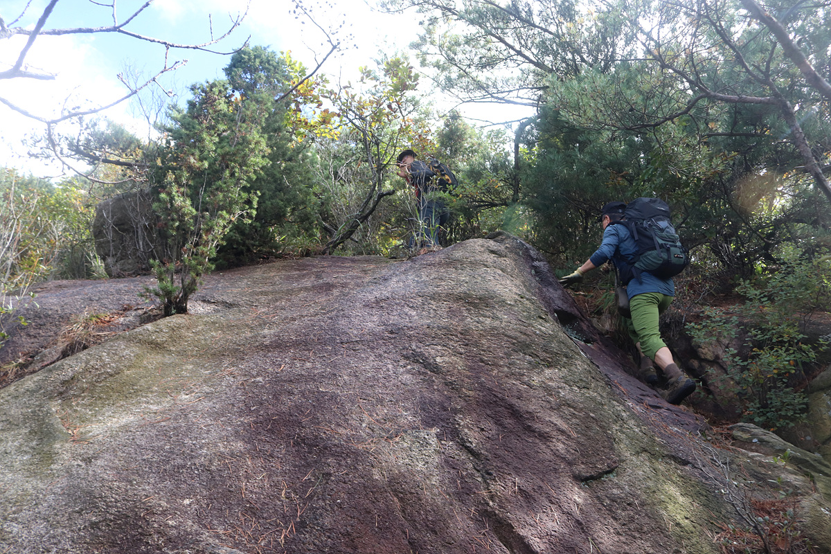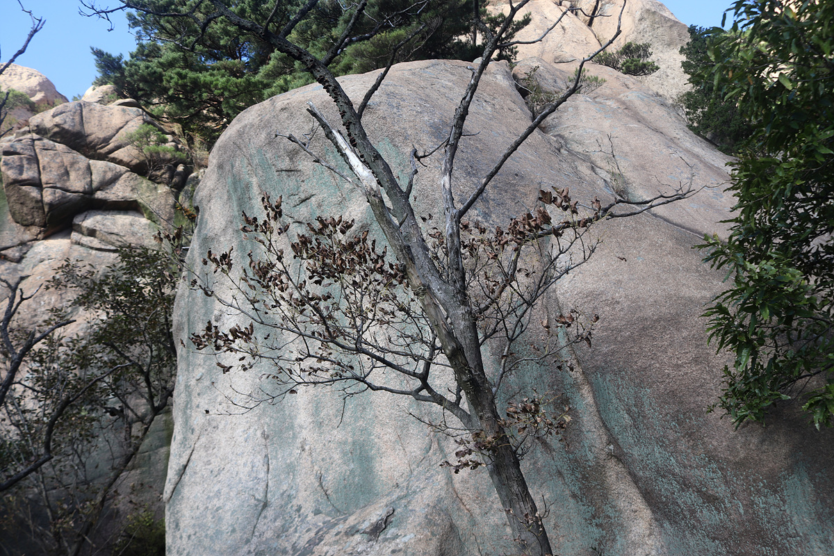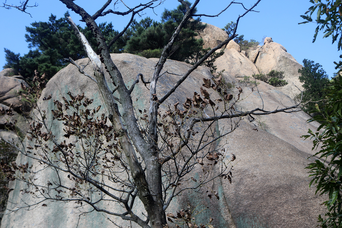 (돌아본 정상바위인데 여기서 바로 갈 수는 없고 홈통바위로 돌아가야 한다)