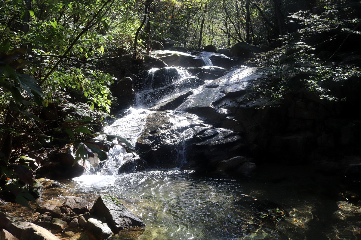 (비봉 방향 사모동계곡 초입에 있는 폭포 차지하고 잠깐 쉬어간다)