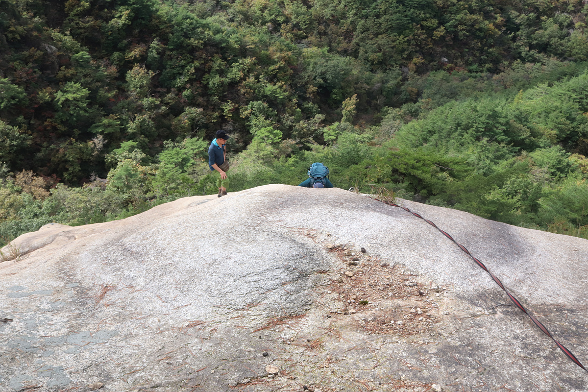 (홈통을 통해 슬랩으로 올라서야 하는 상당히 까칠한 곳... 이곳 때문에 오늘은 줄까지 준비를 했다)