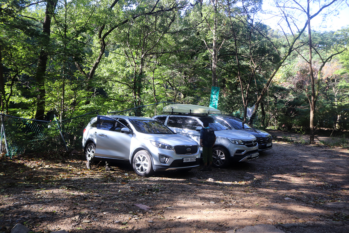 (미타교 아래 공터 주차... 계곡을 정비하면서 상가들이 철수하는 덕분에 주차 공간이 생겼다)