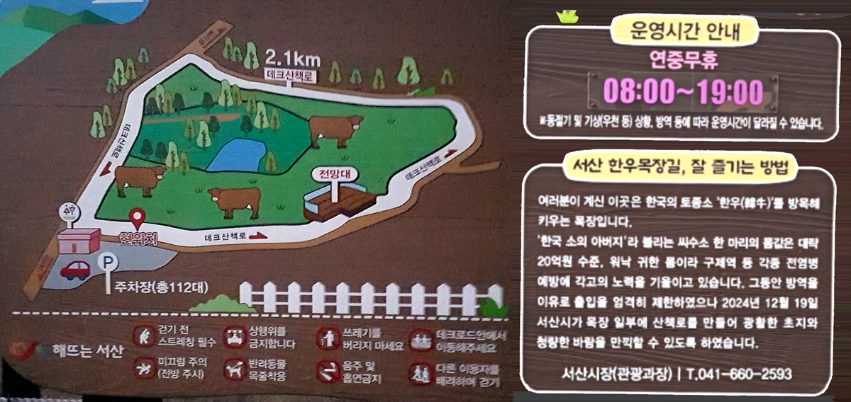 (그동안 방역을 이유로 출입이 엄격히 통제되었던 한우목장 일부를 서산시에서 산책로를 만들어 2024년 12월부터 개방한 곳이다)