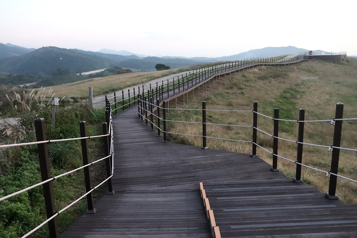 (도로와 만나면서 도로 옆으로 데크산책로가 이어진다)