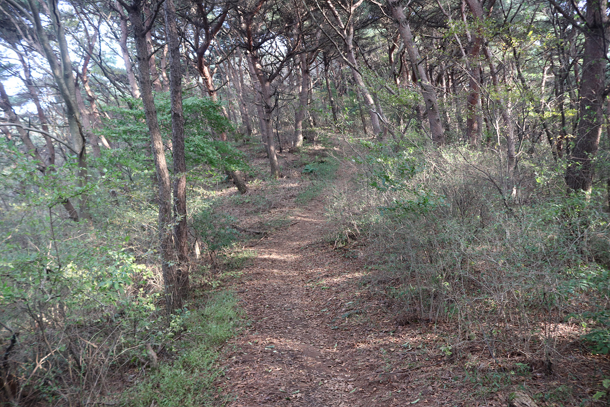 (도비산을 바로 오르는 산길 벗어나 동사로 이어지는 사면길로 들어선다)
