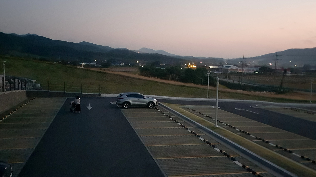 (35분만에 서산 한우목장길 주차장 도착... 일몰시간 10분 전이다)