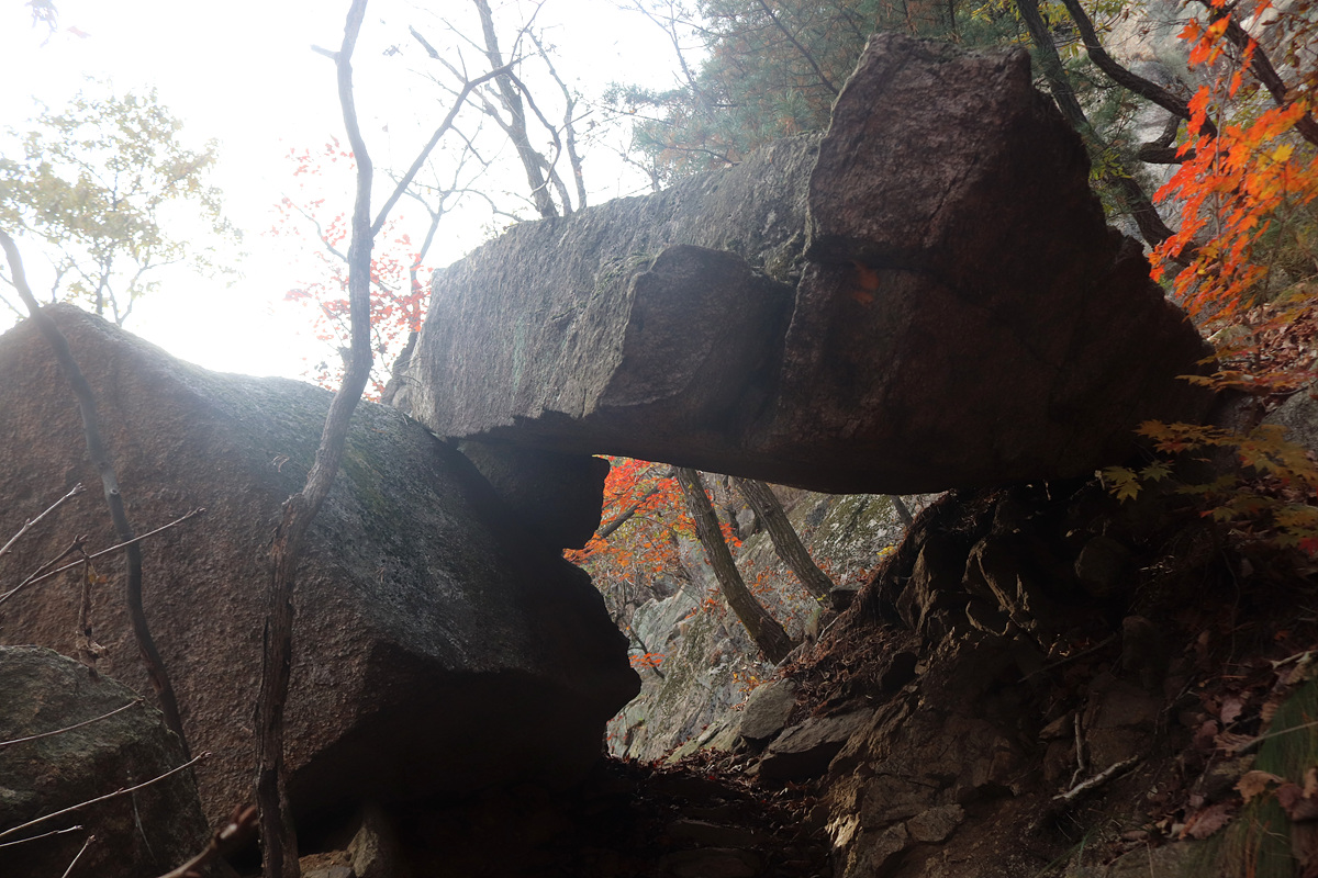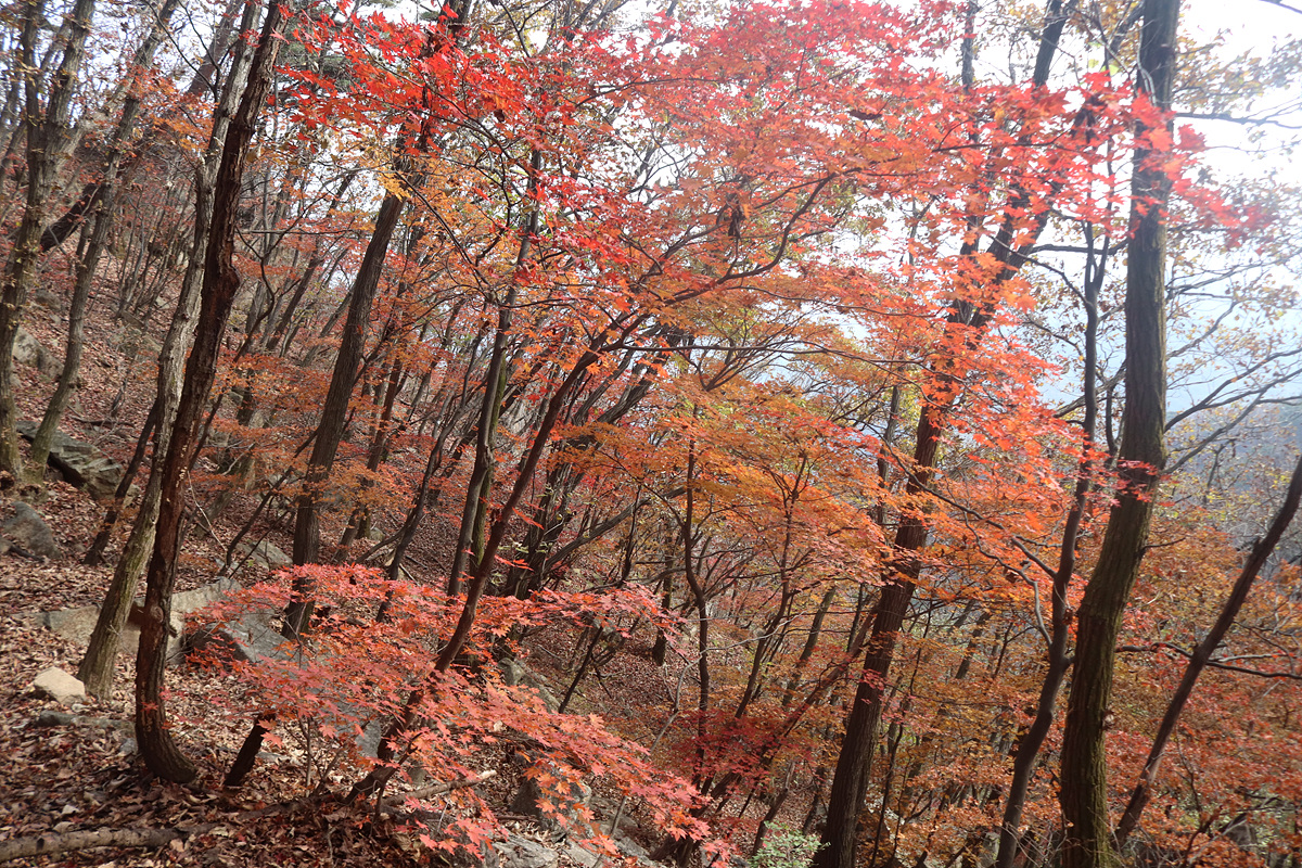 기대한 조망은 예기치 않은 안개때문에 별로였지만 대신 병풍바위와 남선굴 일대 절정을 이룬 단풍들이 펼쳐지면서 조망의 아쉬움을 충분히 보상해준 여정이었다.
