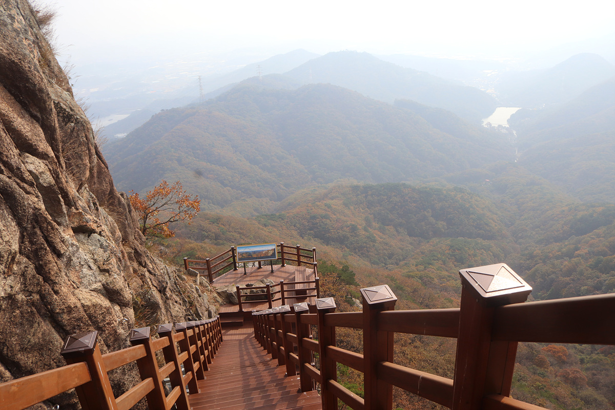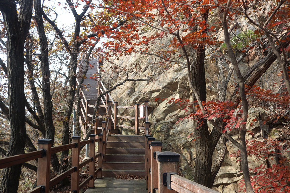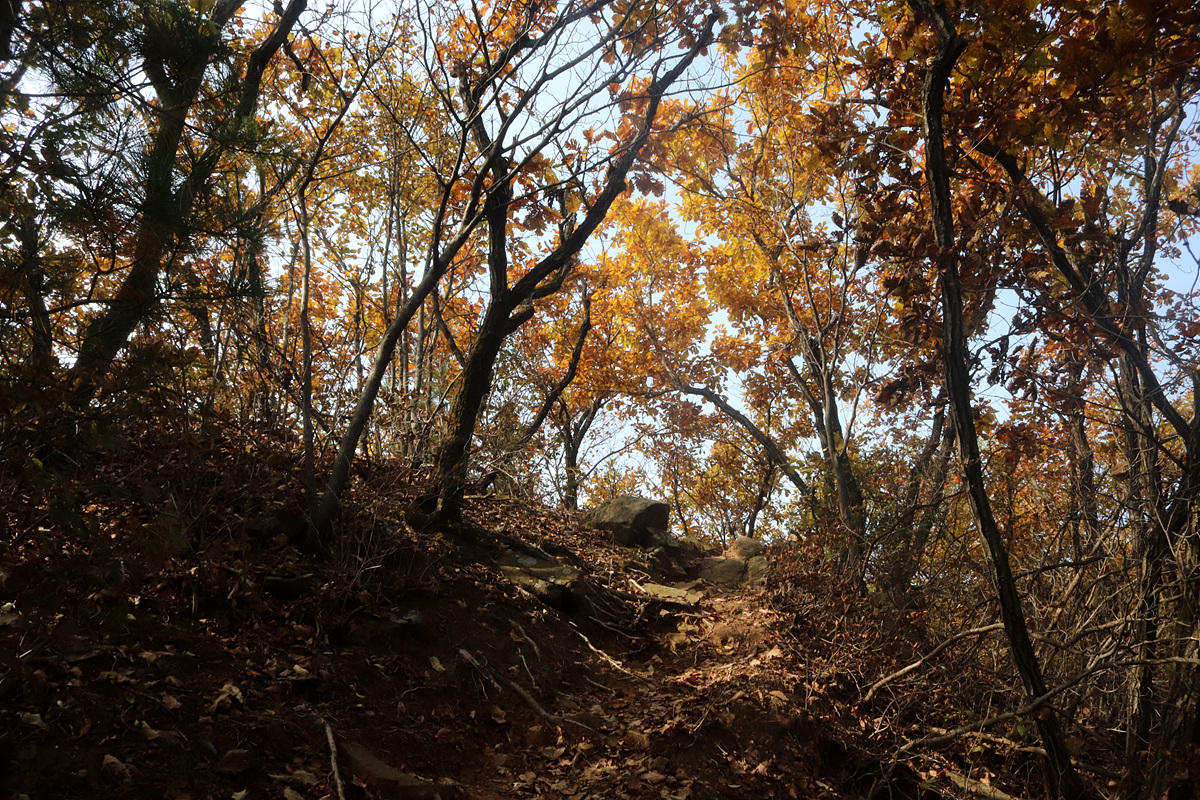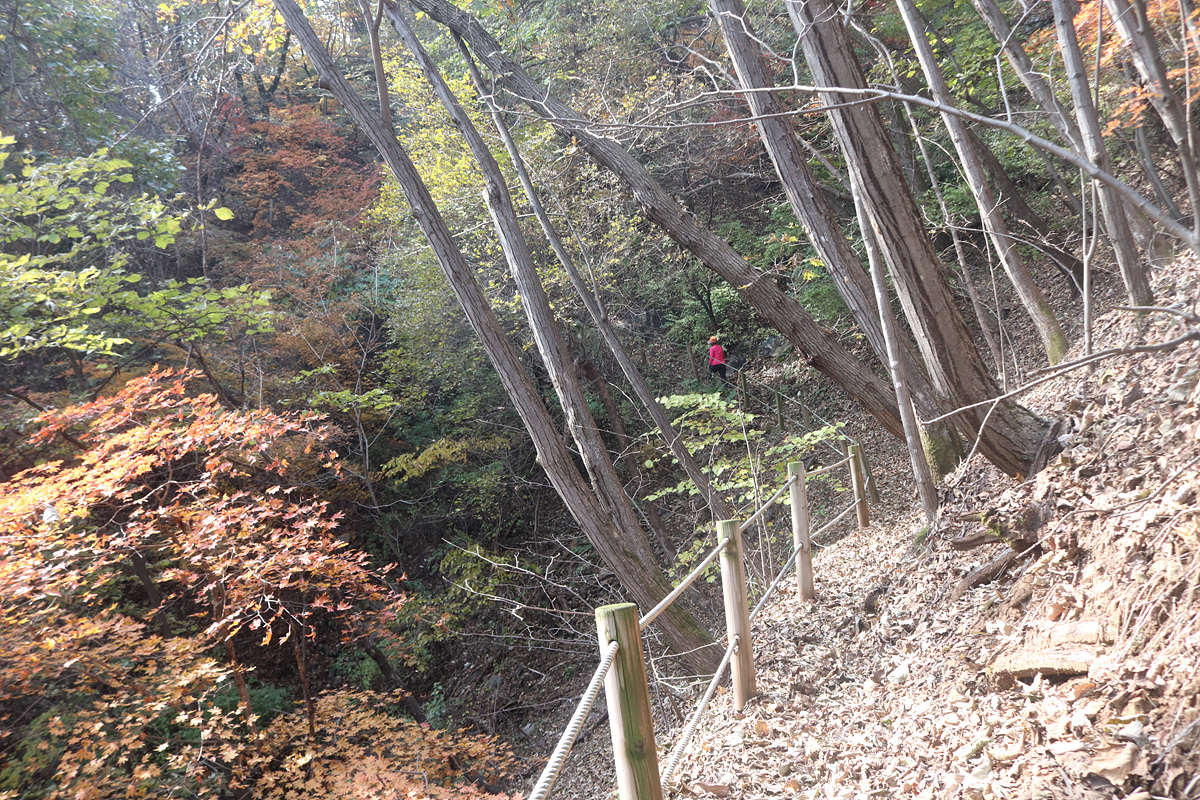 신암리능선부터 성모마리아상까지는 진행한 적이 있지만 동광정사에서 신암리능선까지와 성모마리아상 이후 남선굴쪽은 이번이 초행... 3년 전인가? 개통된지 얼마 후 진행했던 하늘길 암벽데크는 이후 안전 문제로 출입이 통제되었는데 얼마 전 보완공사가 마무리되면서 다시 개방을 한 바 단풍도 한창일 것 같으니 겸사겸사 다시 한번 진행해 보기로 하고 코스를 잡은 것이다.