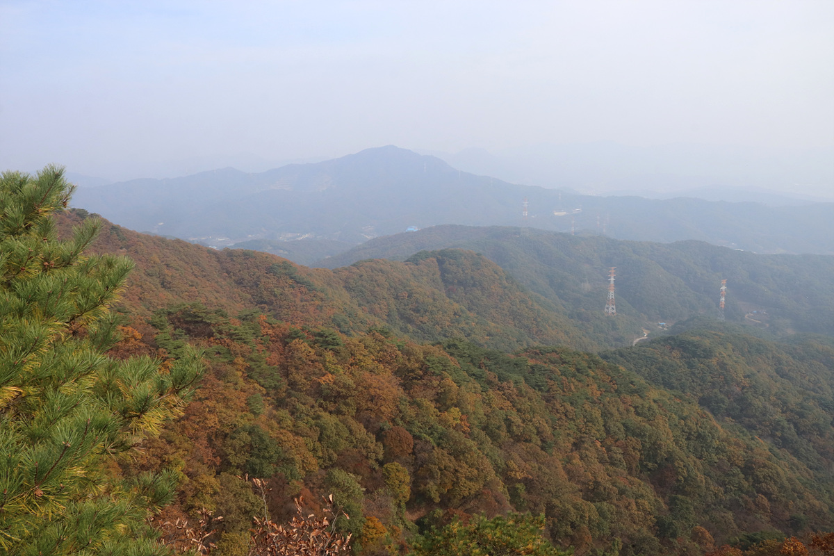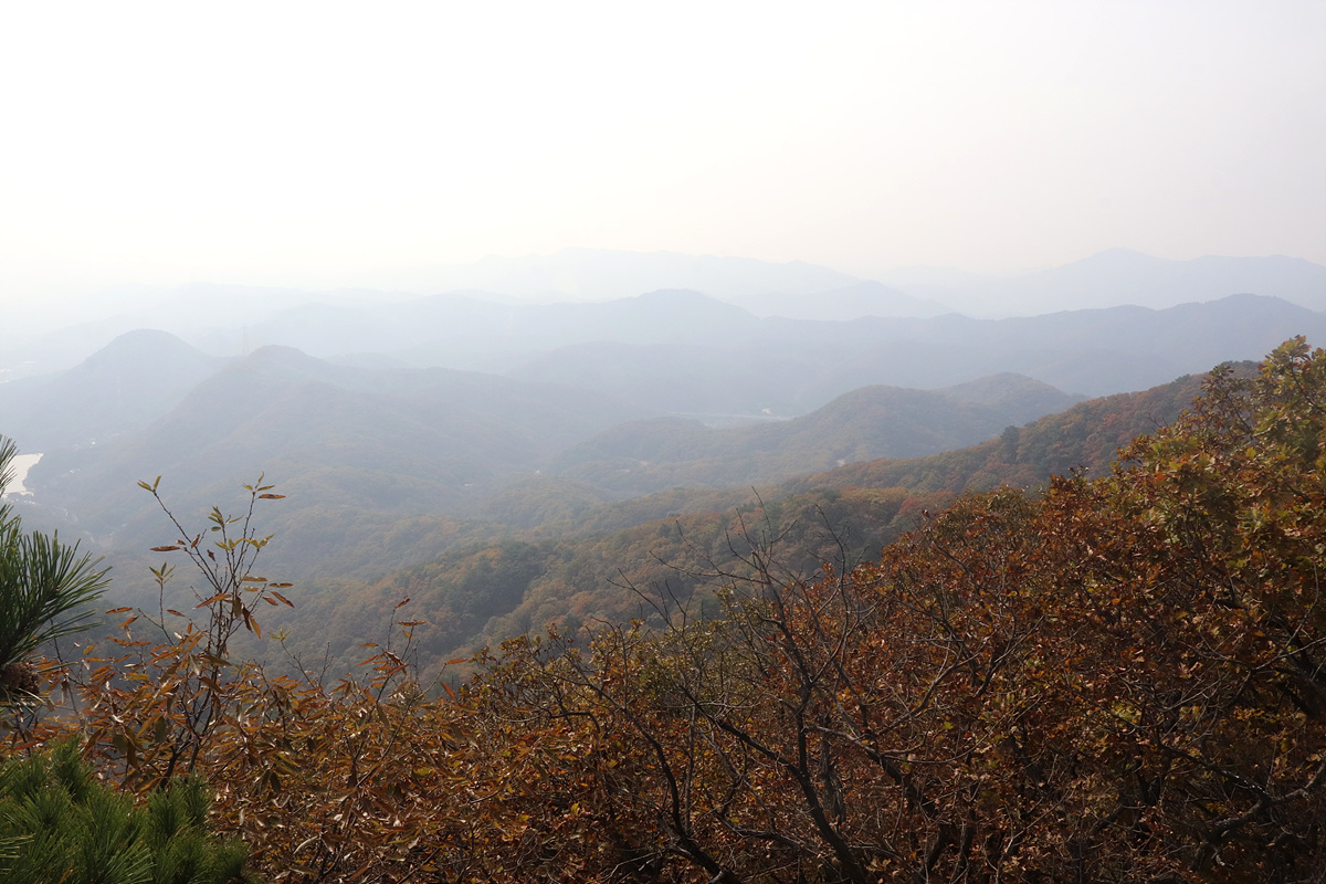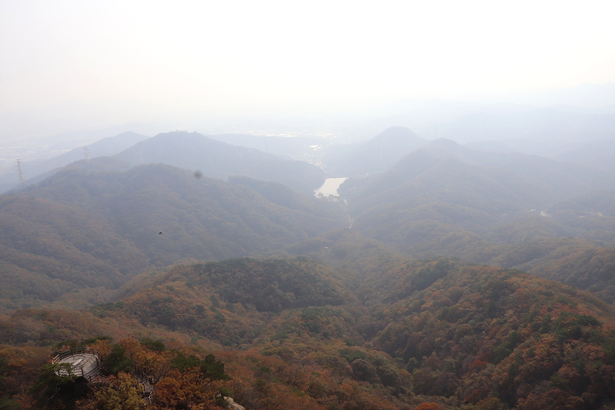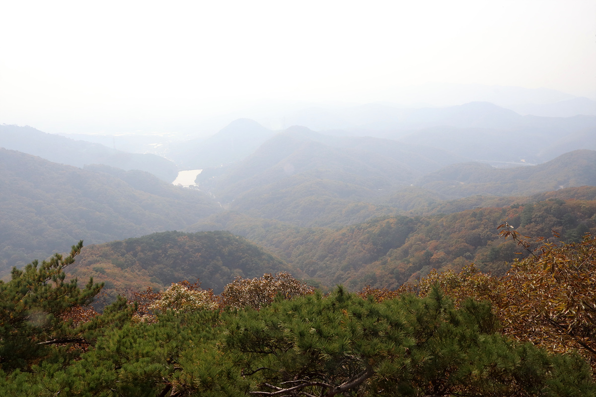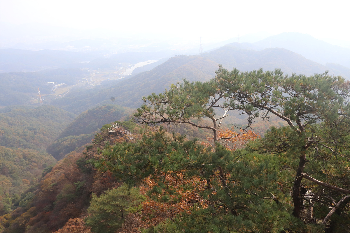 (가까운 곳은 잘 보이지만 안개가 덜 걷혀 뿌연 조망뿐이니 아쉬움이 남는다)