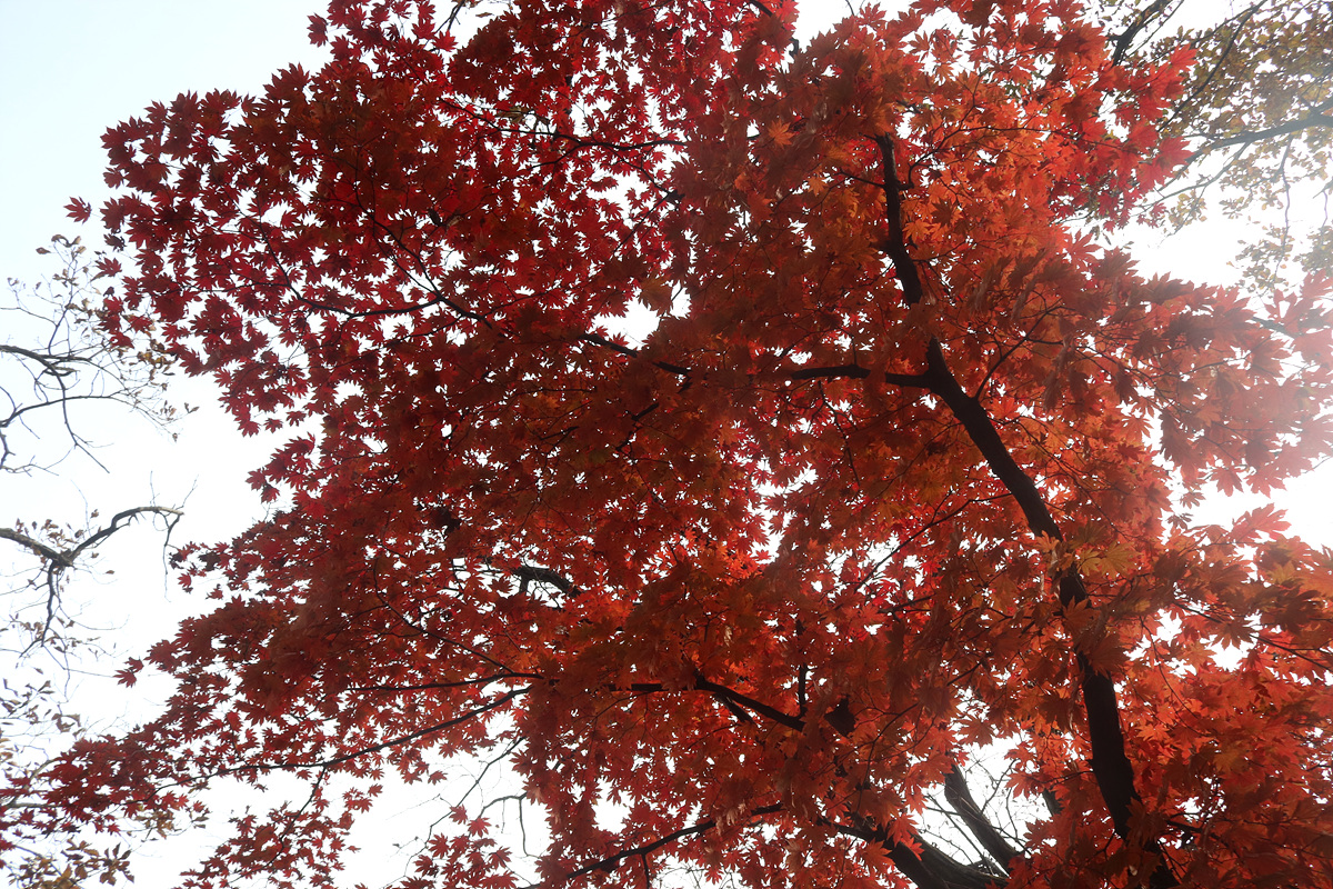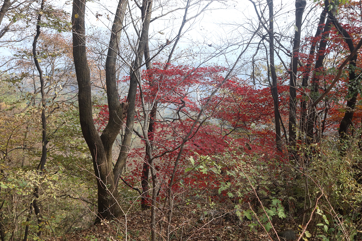 (유난히 붉은 단풍나무가 많은 가운데)