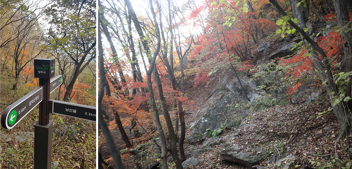 (0.2km라고 되어 있어 아까 병풍바위전망대보다 두 배는 걸릴 줄 알았지만 앞 둔덕을 넘어서니 바로 남선굴)