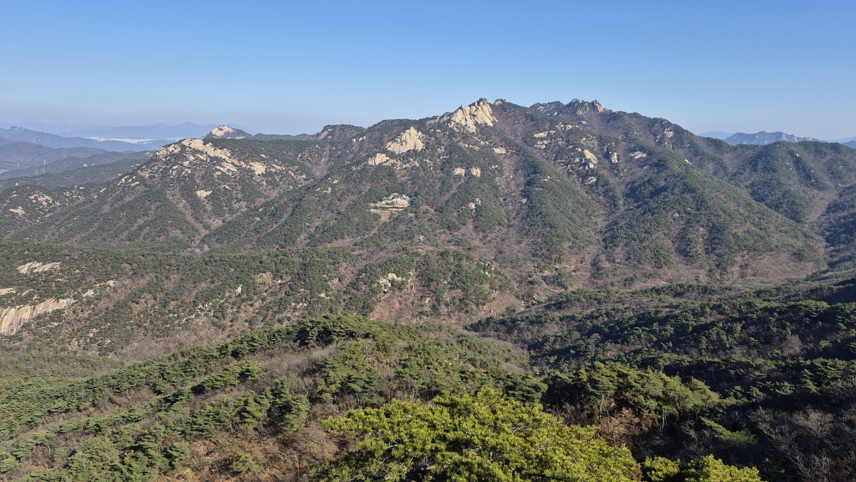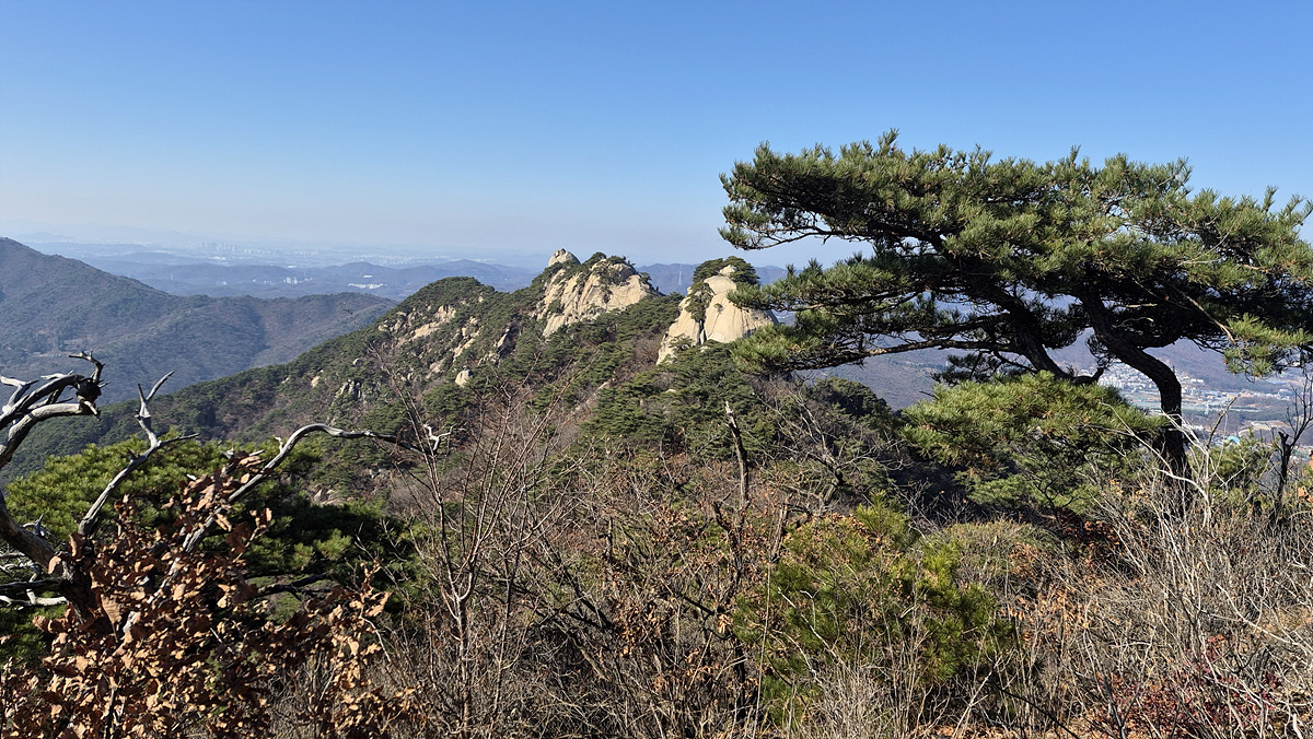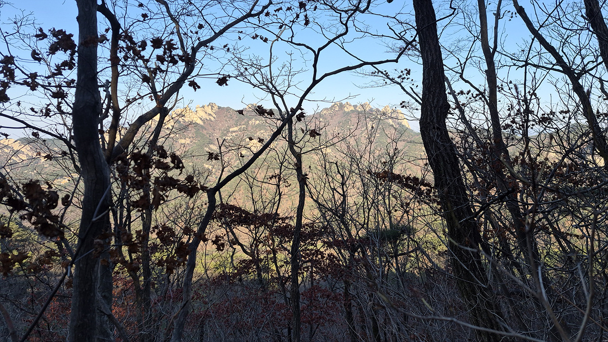 (나무 사이 오봉능선-도봉산총사령부)