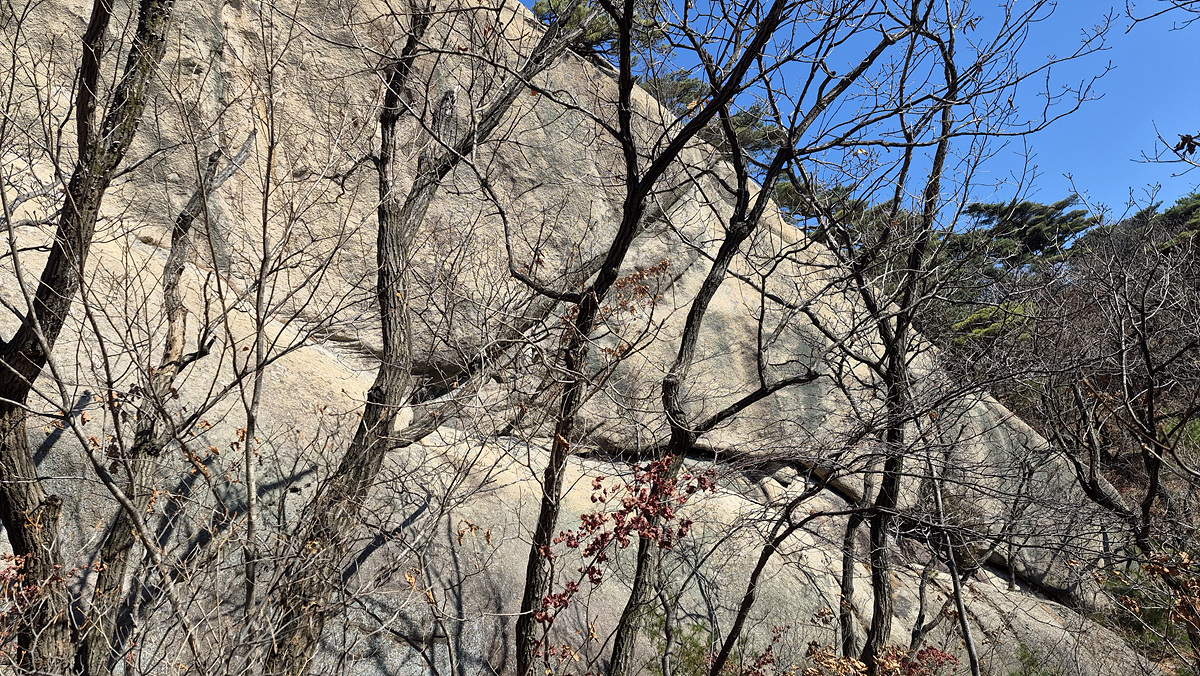 (올려만 보고 사면으로 이어지는 우회길을 따른다)