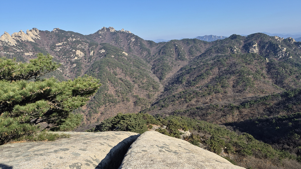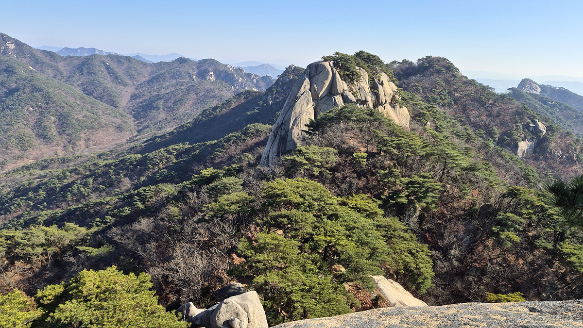 (해골바위능선과 신검사능선이 겹쳐 보인다)