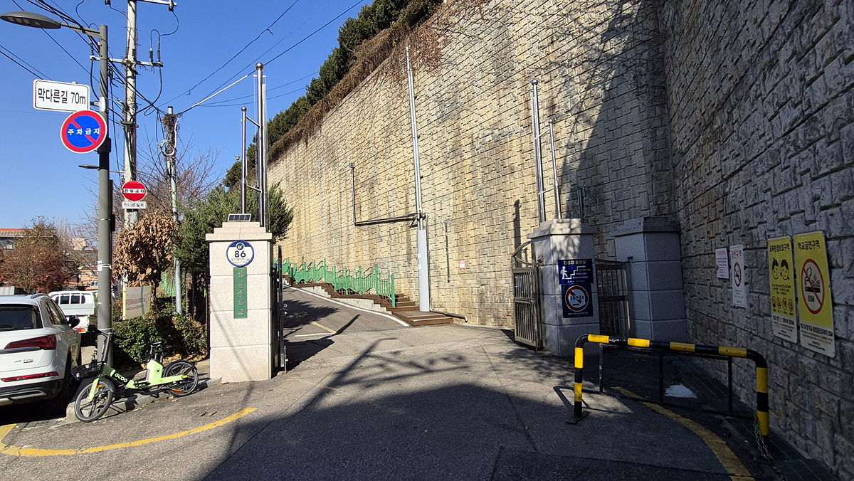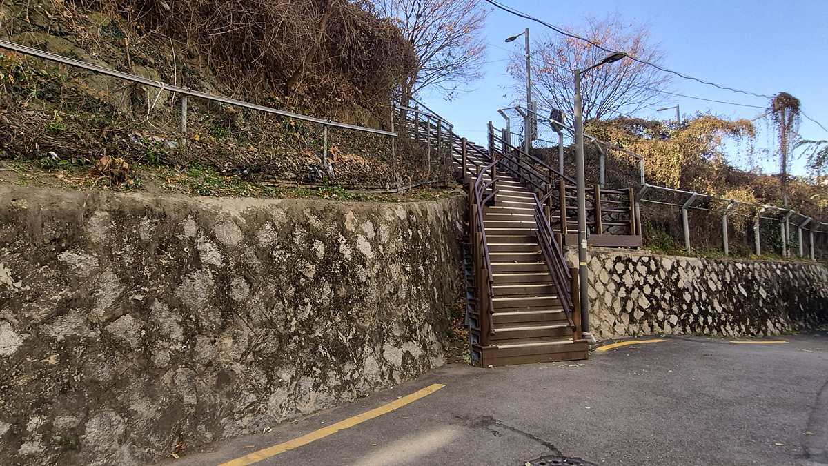(그러나 카카오/네이버맵상 표기된 등로는 절개지와 펜스로 막힌 상태... 옆에 있는 등서초등학교에서 붙는 길도 마찬가지이다)