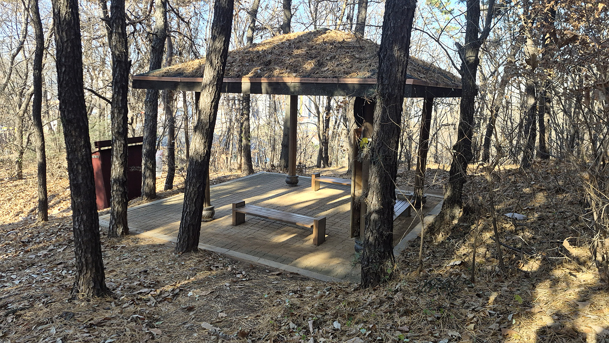 (배수지 직후 쉼터에서 잠깐 쉼을 하고)