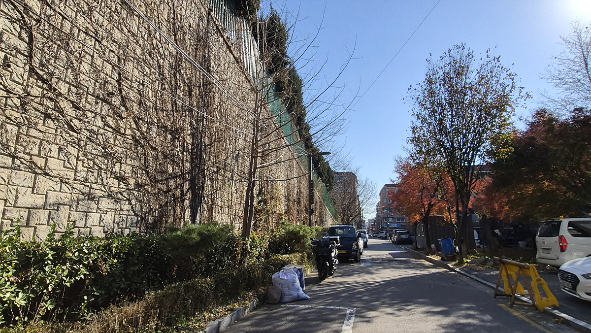 (높은 담장은 화원중학교 담장이다. 정문 나오고)