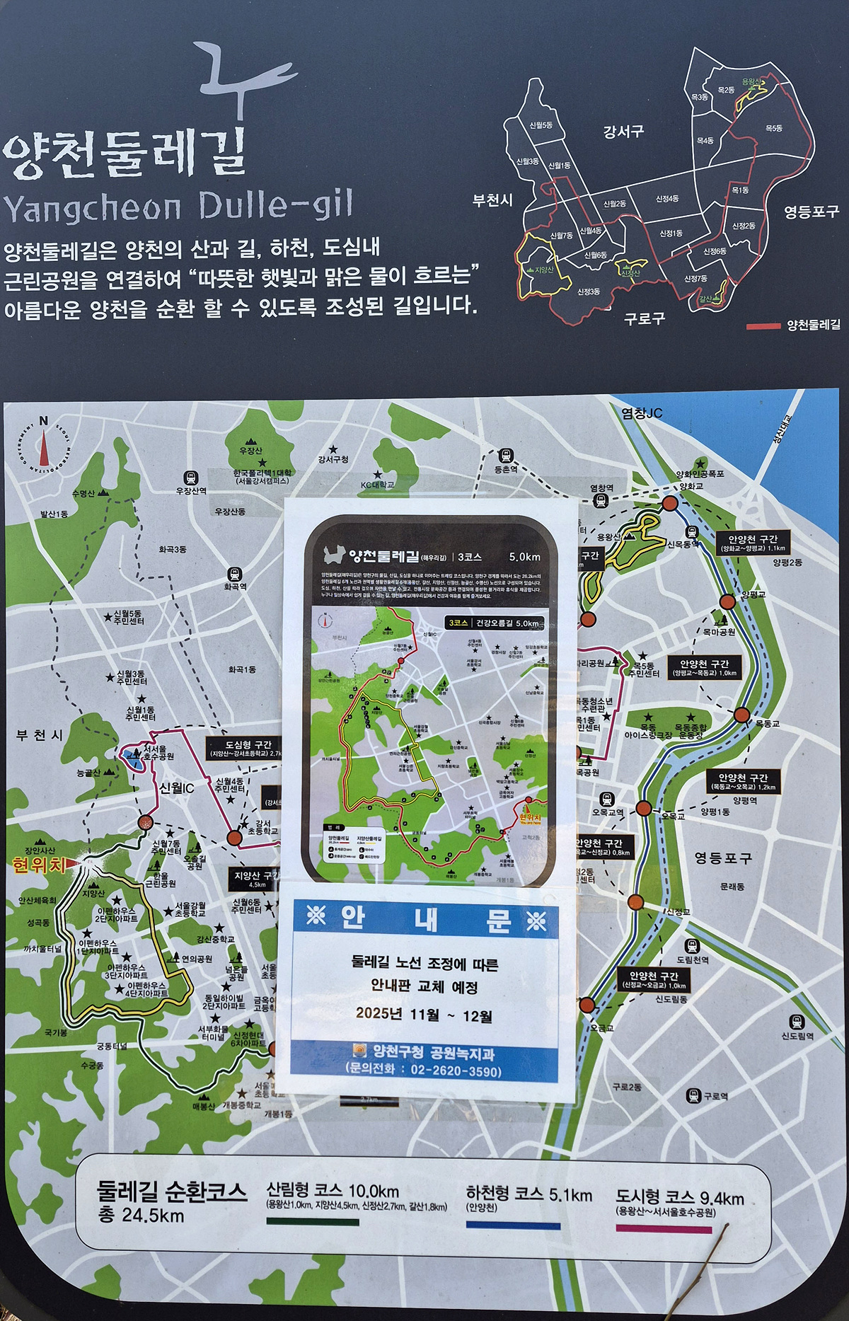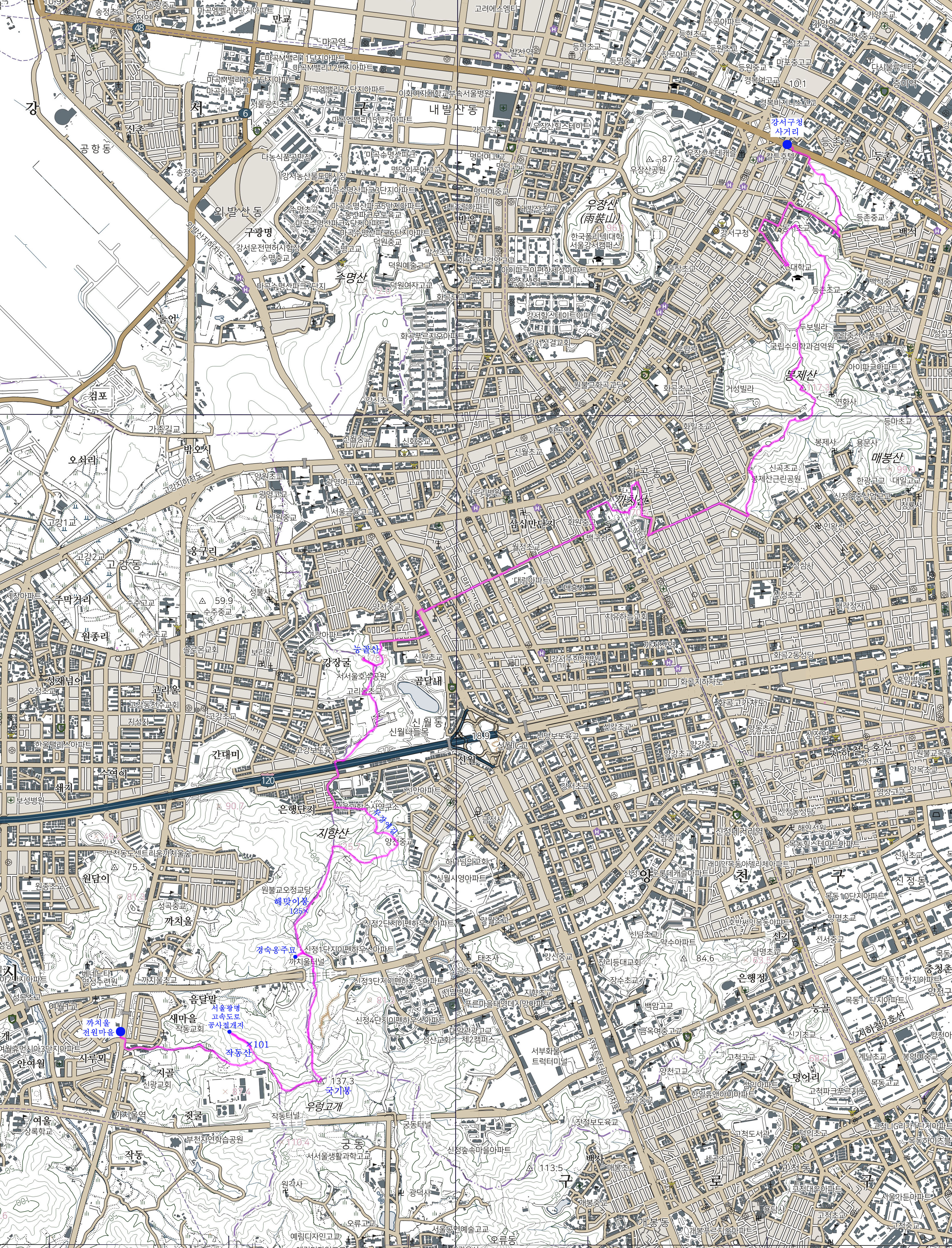강서구청사거리-등촌중교뒷산-봉제산(△117.2)-까치산(×70.4)-화곡중앙시장-능골산(×70.6)-고강보도육교