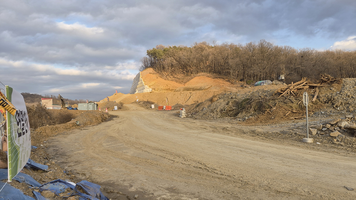 (곧 고속도로 공사 절개지가 나오면서 능선 진행은 불가한 상태이다)
